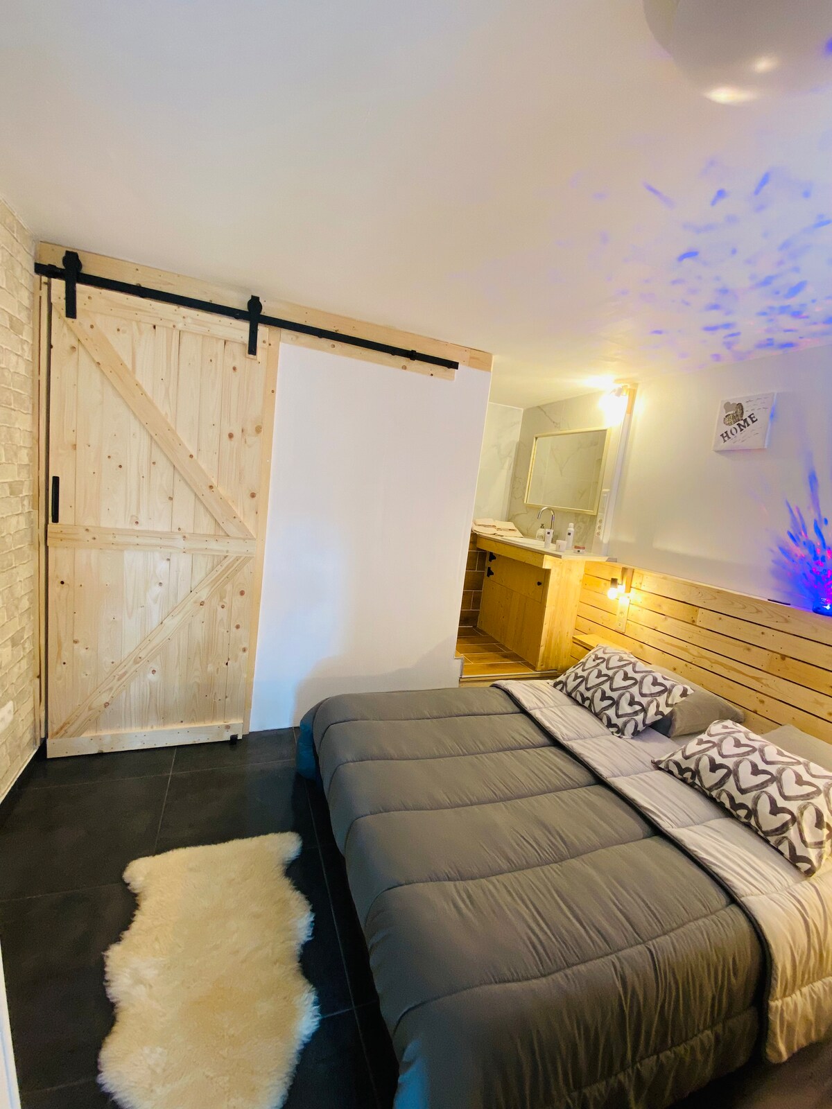 Discover your haven of peace nestled in the heart of a green setting. This is a great place to take a break, recharge or be quiet to work. You can relax in the garden-view spa. Smart TV, Wi-Fi and Netflix included! On sunny days, you can enjoy part of the garden (shared) Sun loungers are available free of charge. Barbecue rental is available at an additional cost. Portable air conditioning is installed