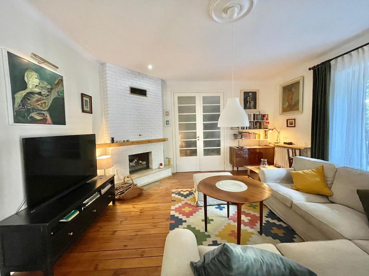 Unique villa located in the picturesque, historic Milanówek, just 30 minutes from Warsaw! - 8 bedrooms - 24 beds - Fully equipped kitchen - Study - Living room of 70 m² with a panoramic fireplace and a height of 7 m, overlooking the sunny garden and terrace The 4600 m² garden is a perfect place for relaxation: - Fire pit area - Slide and swings for children Surroundings: - Horse stable (150 m) - Ponds with wakeboard lifts and a beach (2 km) - City center (1.5 km)