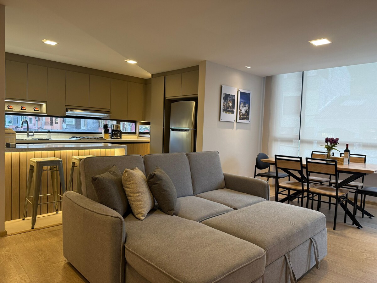 Modern suite in the RYO 1 Building, next to the Río Hospital and the IESS Hospital. It has a spacious bedroom with a bathroom and a walk-in closet, a 2½-seat bed configurable to two single beds, an equipped kitchen, a breakfast bar and a living room with a sofa bed. Located on the 5th floor, it has a beautiful view of a forest, which provides tranquility. Includes high-speed internet, hot water, underground parking, terrace with 360° view and BBQ area. Ideal for tourism, work or medical stays.
