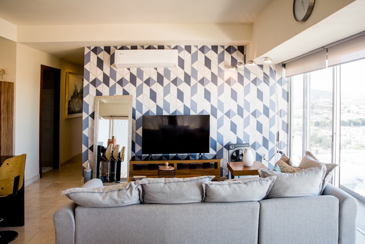 Enjoy a unique stay in the heart of Guadalajara from the top floor of the building with EnitiSky. This beautiful apartment has an exceptional panoramic view that will take your breath away. Fully equipped, this space has everything you need to feel at home, including a full kitchen, a comfortable living room, a spacious bedroom with a King size bed, and another bedroom with two single beds. Book now and live the EnitiSky experience!