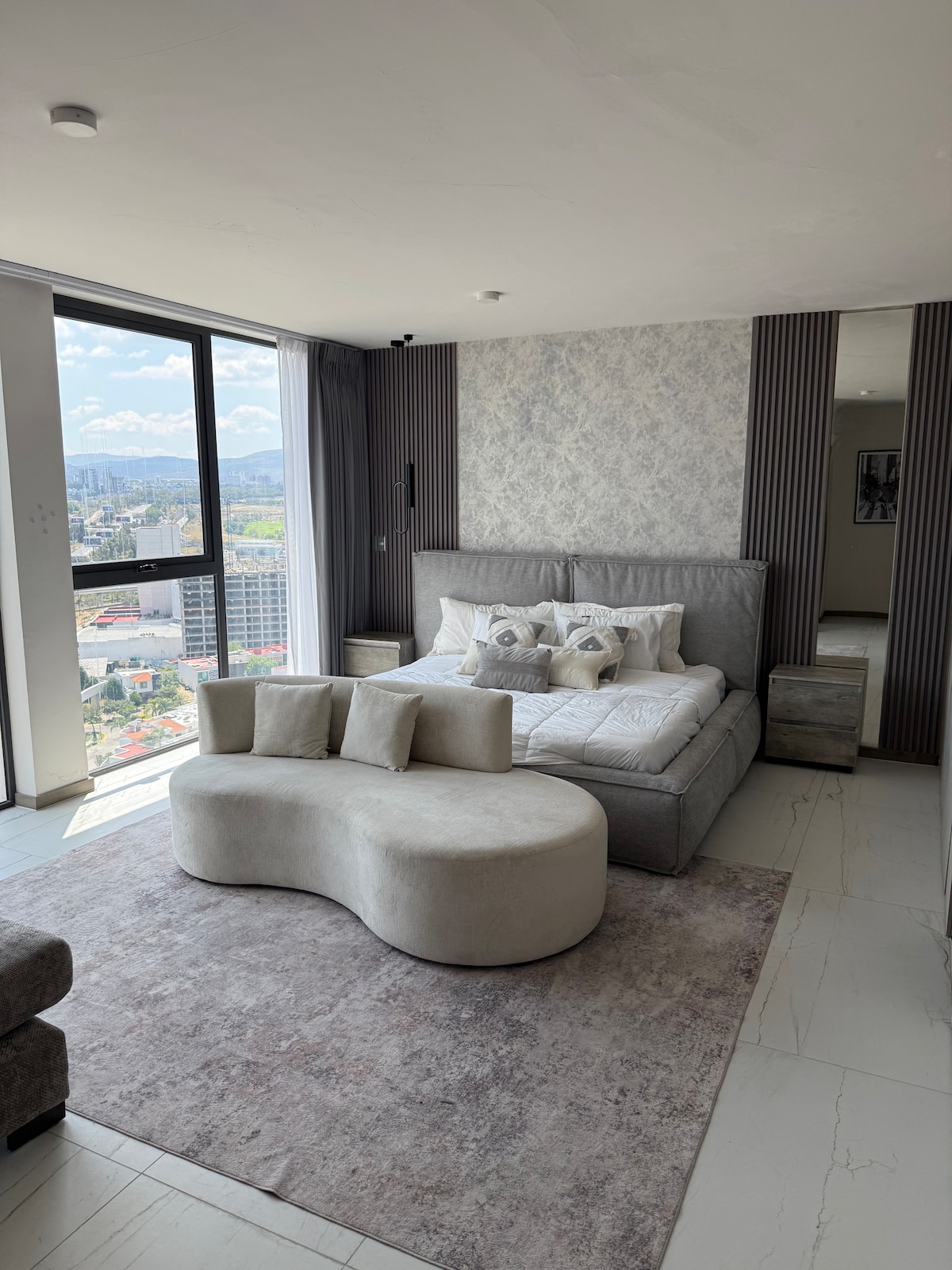New and modern building with the best location, the apartment has a spectacular panoramic view! The privileged location is 10 minutes from Plaza Andares, 10 minutes from downtown, 5 minutes from Chapultepec, 10 minutes from the Expo, and 5 minutes from Providencia. 24-hour security. The apartment is decorated and equipped by designers to give you a comfortable experience during your stay. Independent air conditioning available in each room and in the common area.