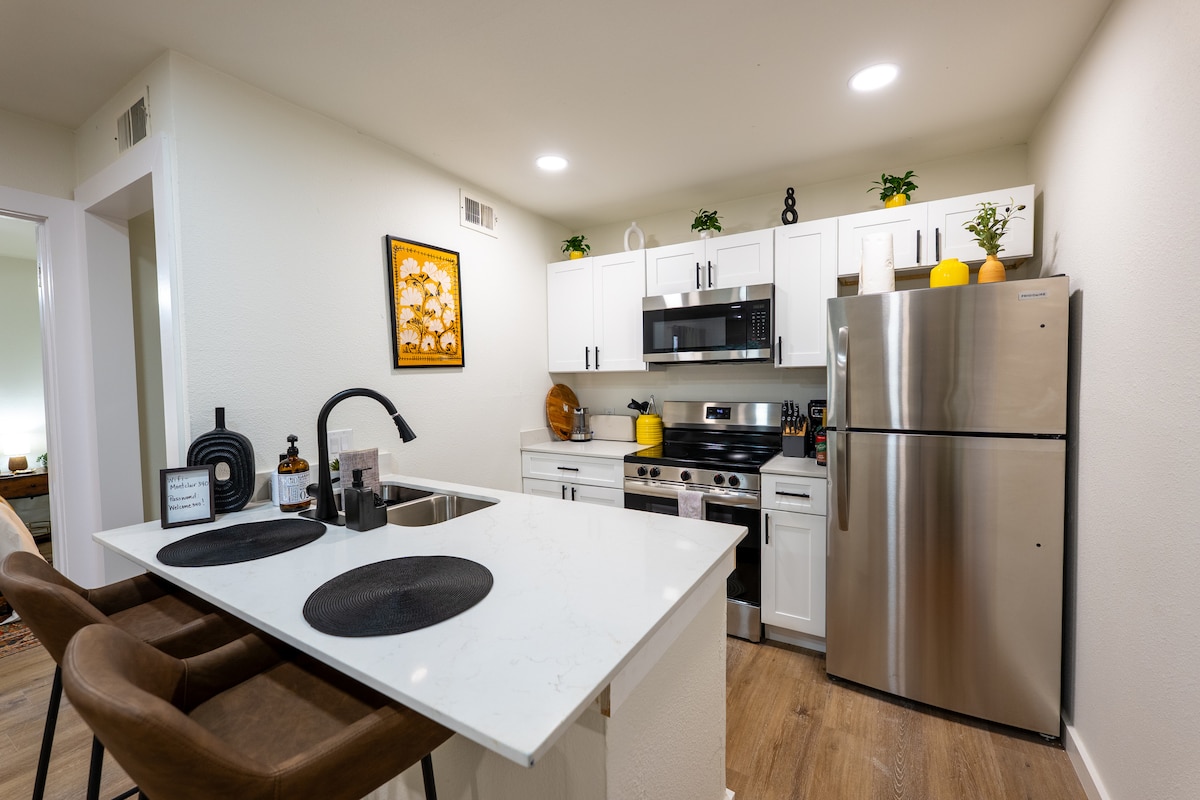 Step into resort-style living at this designer 2BR/2BA flat in San Antonio - Zenful Affirmations. Featuring gated access, a sparkling outdoor pool and modern gym, plus comfortable furniture, this apartment is ideal for long stays. Everything’s included — all utilities, fast Wi-Fi, kitchenware, cleaning supplies, full-size washer/dryer — so you can settle in with zero hassle. Pet-friendly, too! We Look Forward To Welcoming You To Zenful Affirmations!
