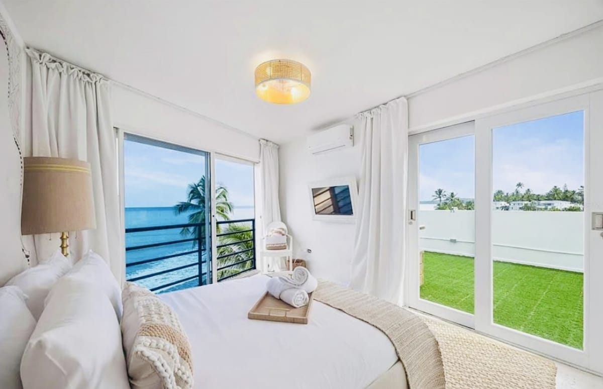 Wake to waves, dine at sunset, and enjoy rooftop movies above the Atlantic. SPACE & ELEGANCE Oceanfront penthouse with 5,000 sq ft of indoor/outdoor living and sweeping Atlantic views. Newly renovated and designer furnished for comfort and style. The highlight is the private rooftop terrace with an outdoor kitchen and movie theater—perfect for sunset dinners and relaxing under the stars. Located in Aguada between Aguadilla and Rincón, minutes from beaches, surf, restaurants, and Highway 2.