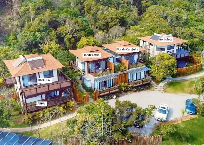 Ubicación inmejorable en Praia do Rosa: a solo 100 m de la playa y 400 m del centrinho. Buda da Lagoa combina vistas espectaculares al mar con detalles de alta calidad. Las casas ofrecen espacios amplios, cocina completa, decks con parrilla, Smart TV, aire acondicionado en todos los cuartos, servicio de limpieza diario y Wi-Fi fibra óptica de 600 Mbps. Ideal para disfrutar con familia o amigos, conectarse con la naturaleza y relajarse sin necesidad de usar el auto.