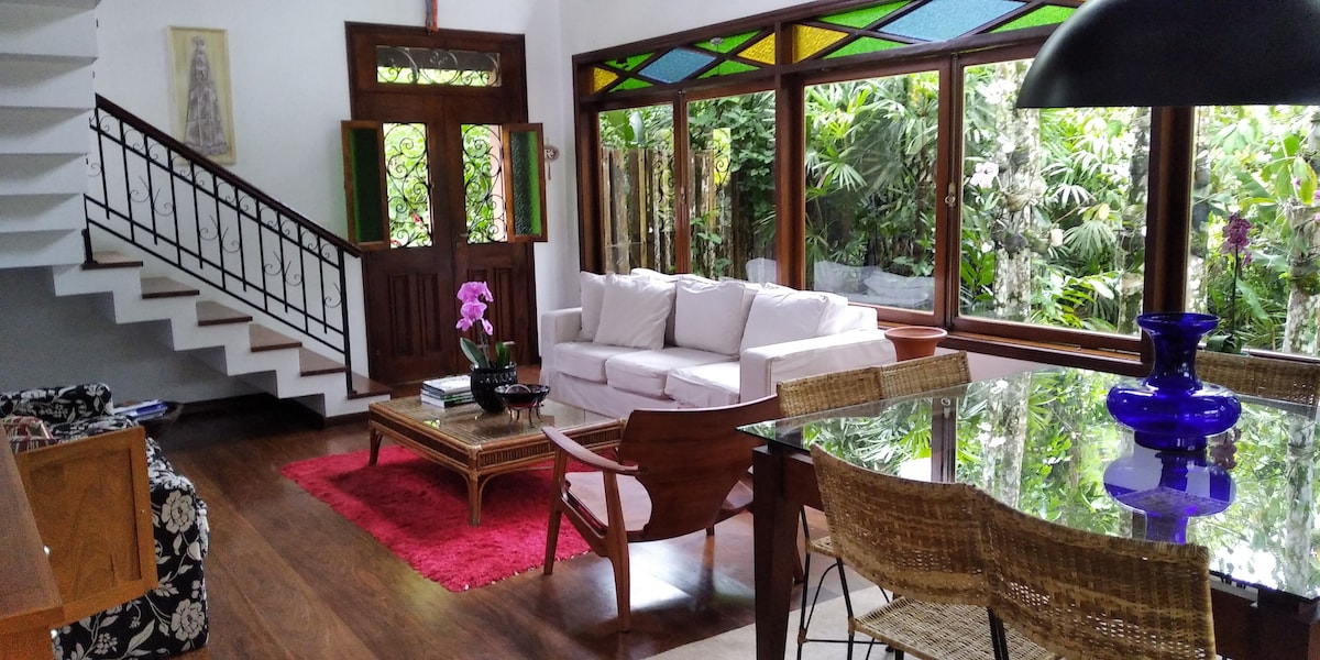 Freedom, nature and simplicity define this house in Guarujá, ideal for those seeking tranquility. Located on the most family-friendly beach in the region, it offers a cozy atmosphere with a hammock to the sound of birds, fruit in the yard and the company of the tortoise Juju, who has been with the family for 20 years. The housekeeper Neide, always attentive, guarantees safety and hospitality. The house has utensils, Smart TV, internet, comfortable rooms and ceiling fans. Constantly improving, keeping the essence simple.