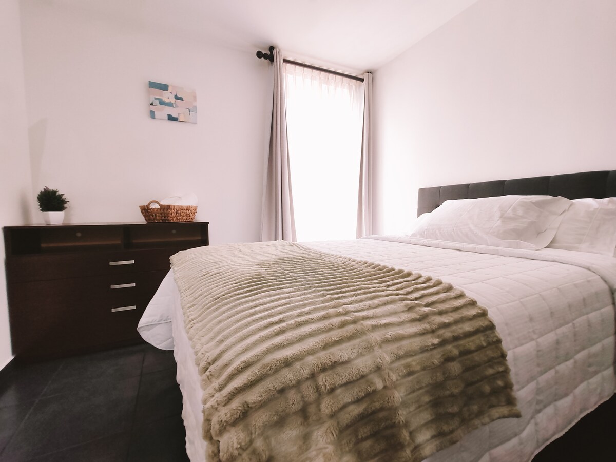 Enjoy a stylish experience in this accommodation located in the heart of Zone 11, with capacity for up to 8 people. You'll be staying in a tranquil and relaxing environment, just minutes away from restaurants and shopping centers. The building features a gym, swimming pool, recreational areas, coworking spaces, and fun activities for the little ones.