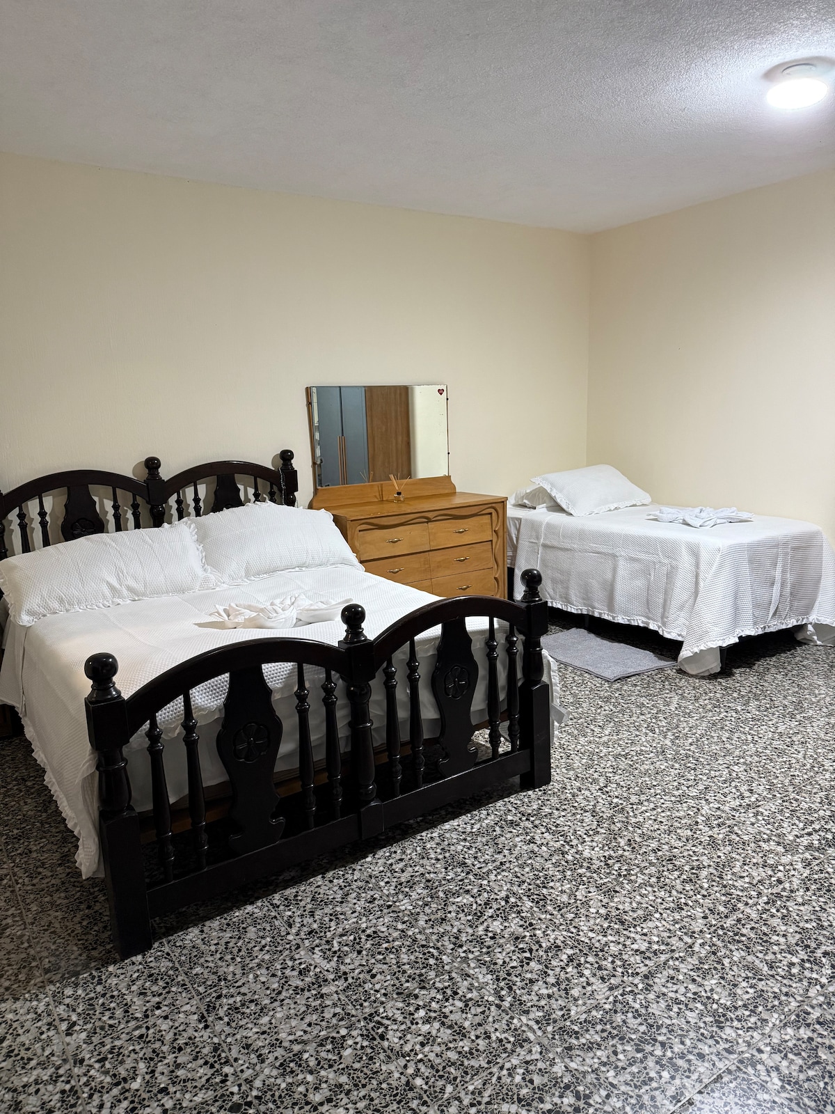 Este alojamiento con estilo es perfecto para viajes en grupo. Habitación con todo lo que necesitas para una mágica estadía en Guatemala. En el corazón de Ciudad de Guatemala, cerca del area comercial más importante y a pasos del transporte público. Con cama Queen y una imperial tipo nido, escritorio para trabajo, con instalaciones de USB y entrada de cable LAN para hacer de su trabajo más sencillo. Cuenta con TV 43 plgs, WIFI de alta velocidad y en area común con Cocineta