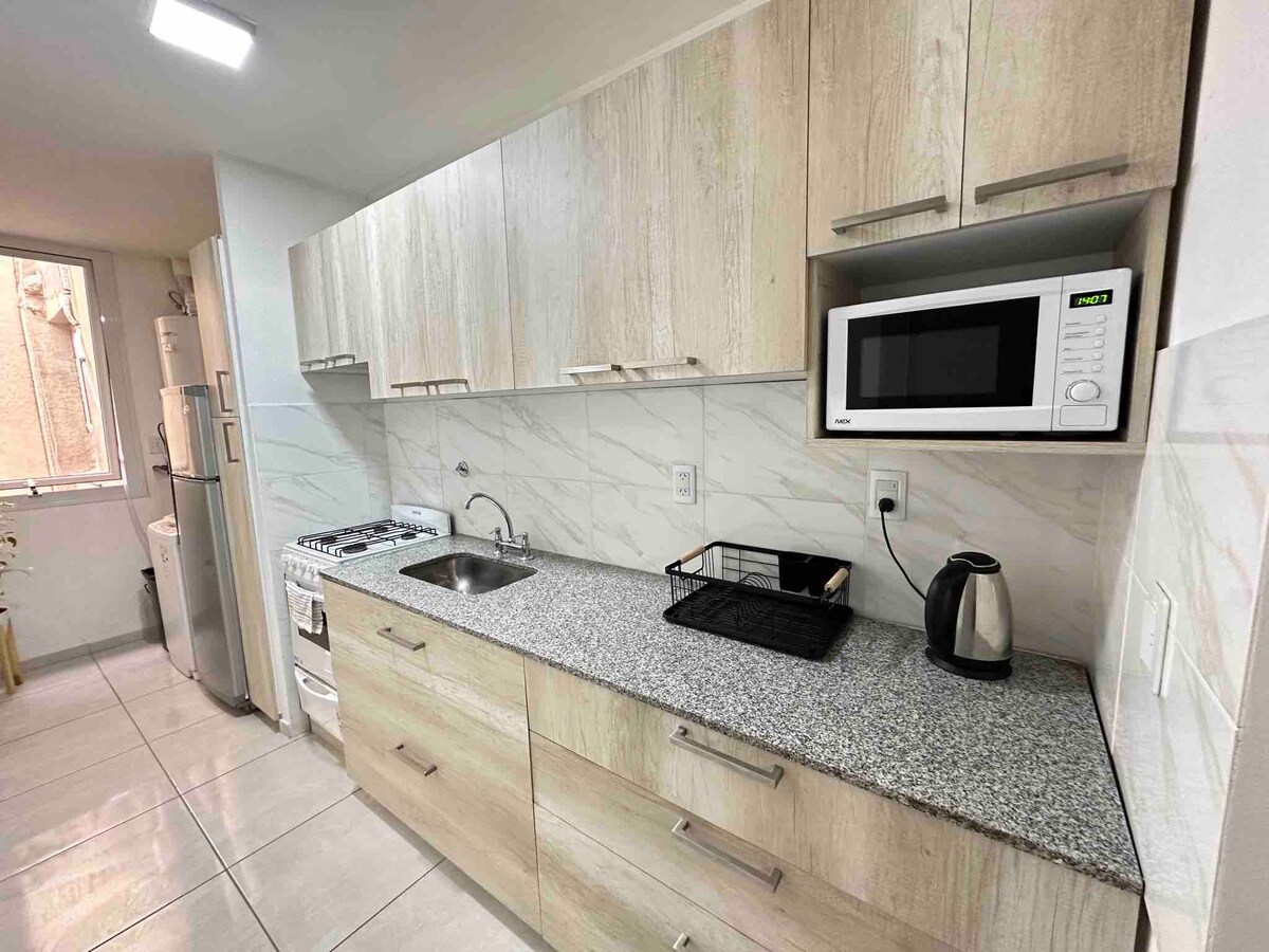 Ideal for those who want to stay in a central area, with easy access to public transportation and Mendoza's main attractions. Located 15 min (10 km) from Mendoza International Airport, 2.5 km from the bus terminal, 2 km from Parque Gral San Martin, and 1 block from the Mza Pedestrian Street. Close to shopping areas, bars and restaurants. Check-in is after 2 pm Check out at 10 am please. 4th floor