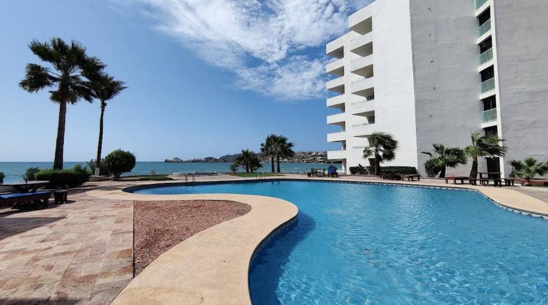 Your perfect oceanfront getaway in Playa Blanca, San Carlos! One-bedroom apartment, ideal for couples or personal rest. 11th floor with spectacular views of the Sea of Cortez. Comfortable stay, equipped kitchen, floor-to-ceiling windows and private terrace with unforgettable sunsets. Access to oceanfront pool, jacuzzi, gym, gardens, sun loungers, barbecues and 24/7 security. An exclusive experience in one of San Carlos' most sought-after towers.
