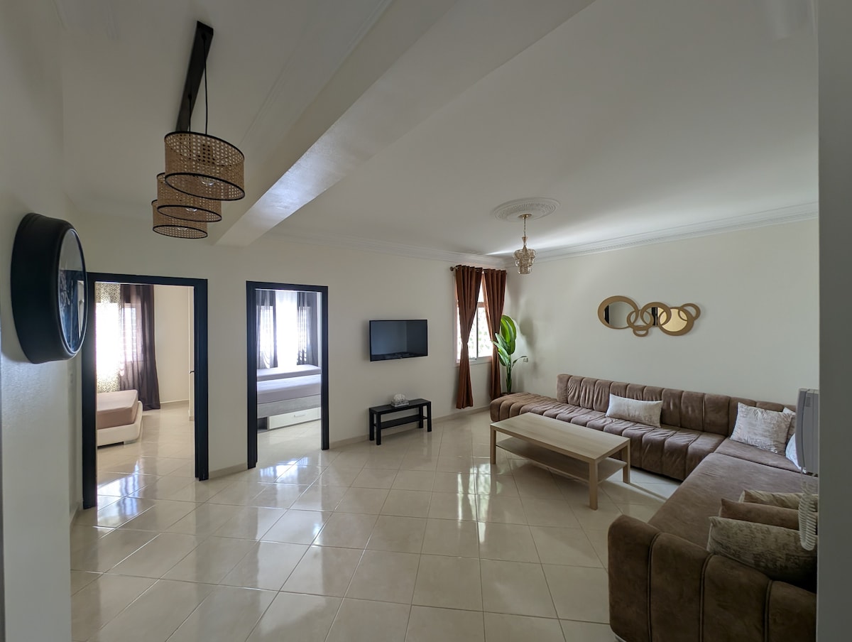 Have fun with the whole family at this stylish place. Apartment in a secure and closed residence, close to the airport and the beaches of Tangier... A spacious living room with quality armchairs, a 50-inch smart TV. a master bedroom with dressing room, 2nd bedroom with two twin beds and the set with Simmons medical mattresses. a well-equipped kitchen, all electric with 0 Gas equipment for your safety. a spacious shower with a Junkers electric water heater.