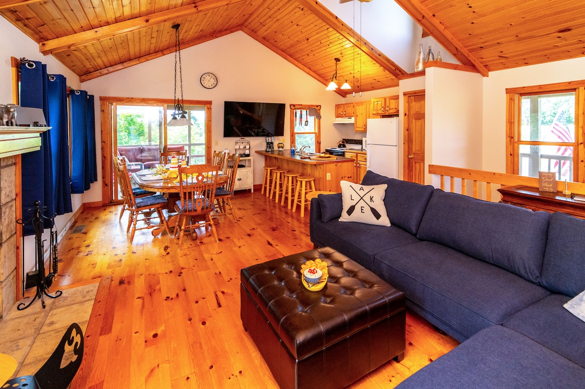 Peaceful, pet-friendly ($50 fee per reservation) vacation home in the Galena Territory. 3 bedrooms, 3 bathrooms, two living rooms, 2 wood fireplaces, screened in porch, upper level porch, deck, firepit, access to owner's club (pool, exercise room and game room), marina and 24 miles of hiking trails. Sleeps up to ten people. (Please ensure your guest count is accurate when you make your reservation. The guest count can be updated if needed. Inaccurate reservations will be charged accordingly. )