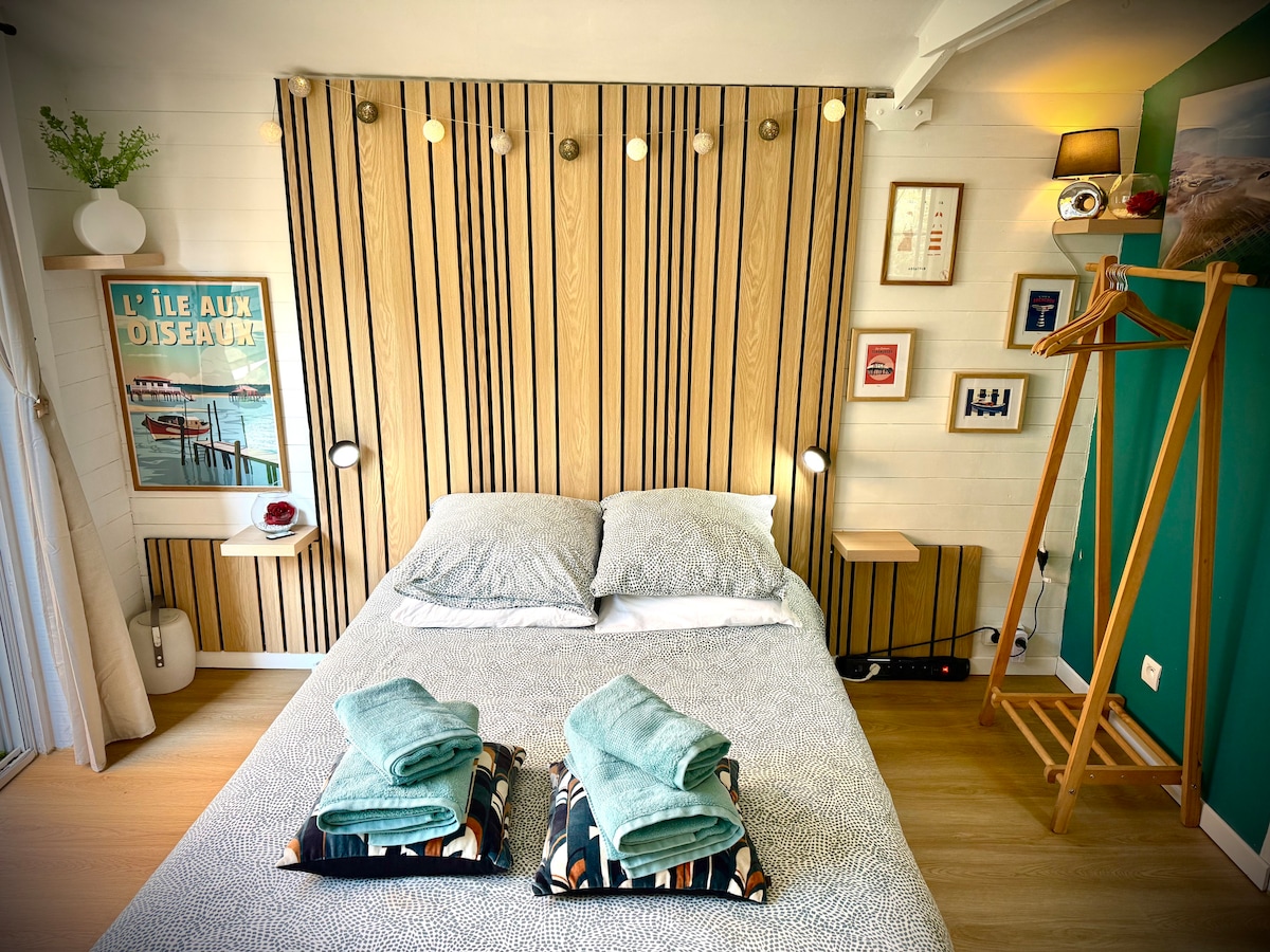 In the shade of a mimosa, you will appreciate the authenticity of this cottage located close to the ports of Gujan-Mestras and the shops. This 27 m2 independent 2-room is equipped to the highest standard to allow you to have a comfortable stay (Senseo coffee maker, dishwasher, washing machine for long stays, sheets, towels, Wi-Fi, 4 bikes...). Ideal for two people, a sofa bed allows two extra beds. Guests can also enjoy a terrace (with plancha) and an outdoor garden.