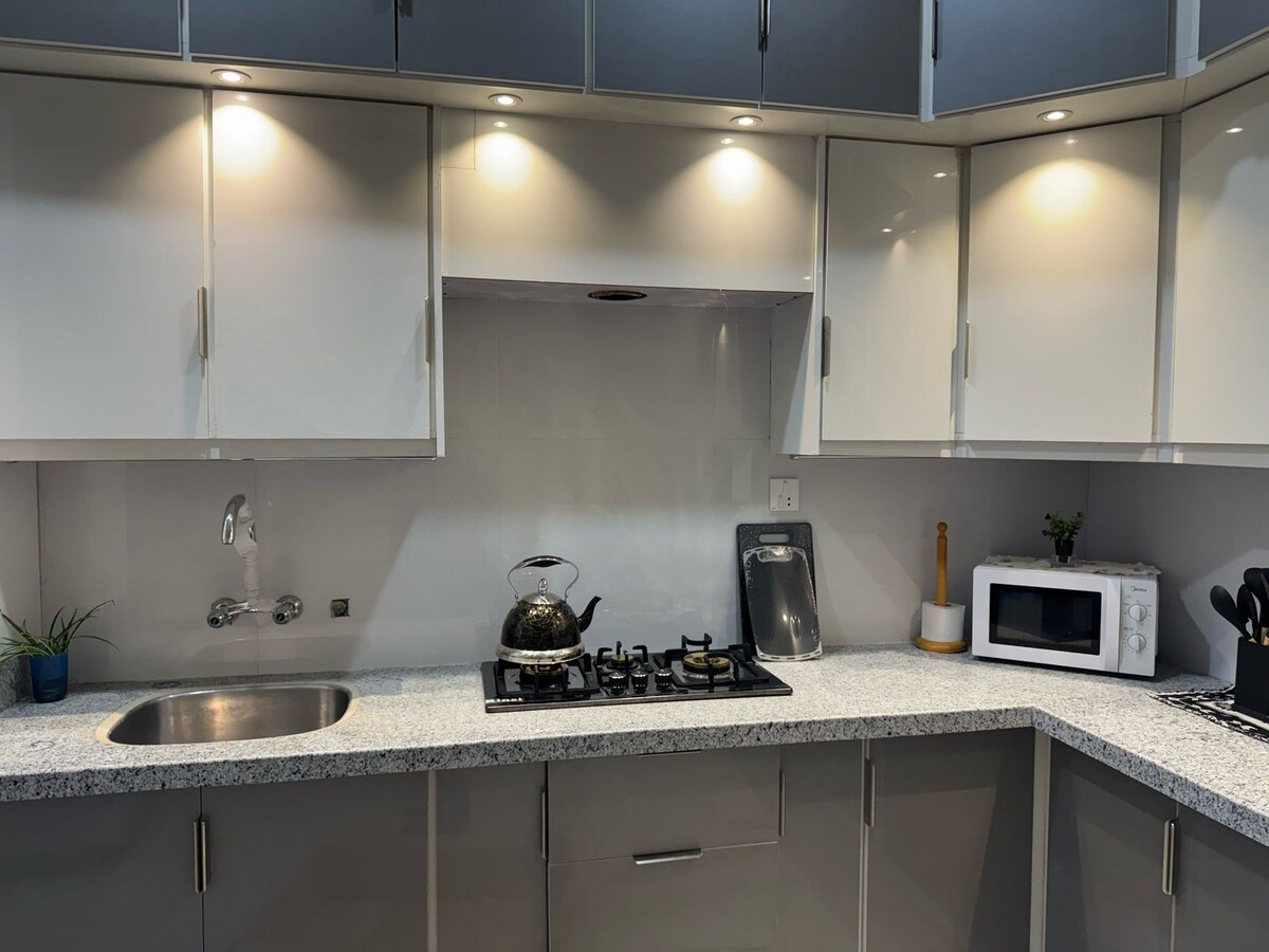 2 Bedroom apartment in safe, clean, family-friendly environment. Both bedrooms have air conditioning. Lounge with 55” LED TV and kitchen for light cooking. Ideal for families and responsible guests seeking peaceful stay. House Rules (Strict): CNIC/Passport required at check-in. Only registered guests allowed. Unmarried couples not allowed. Married couples must show CNIC with husband’s name. No drugs, alcohol, loud music or parties. Maintain cleanliness. JazakAllah Khair.
