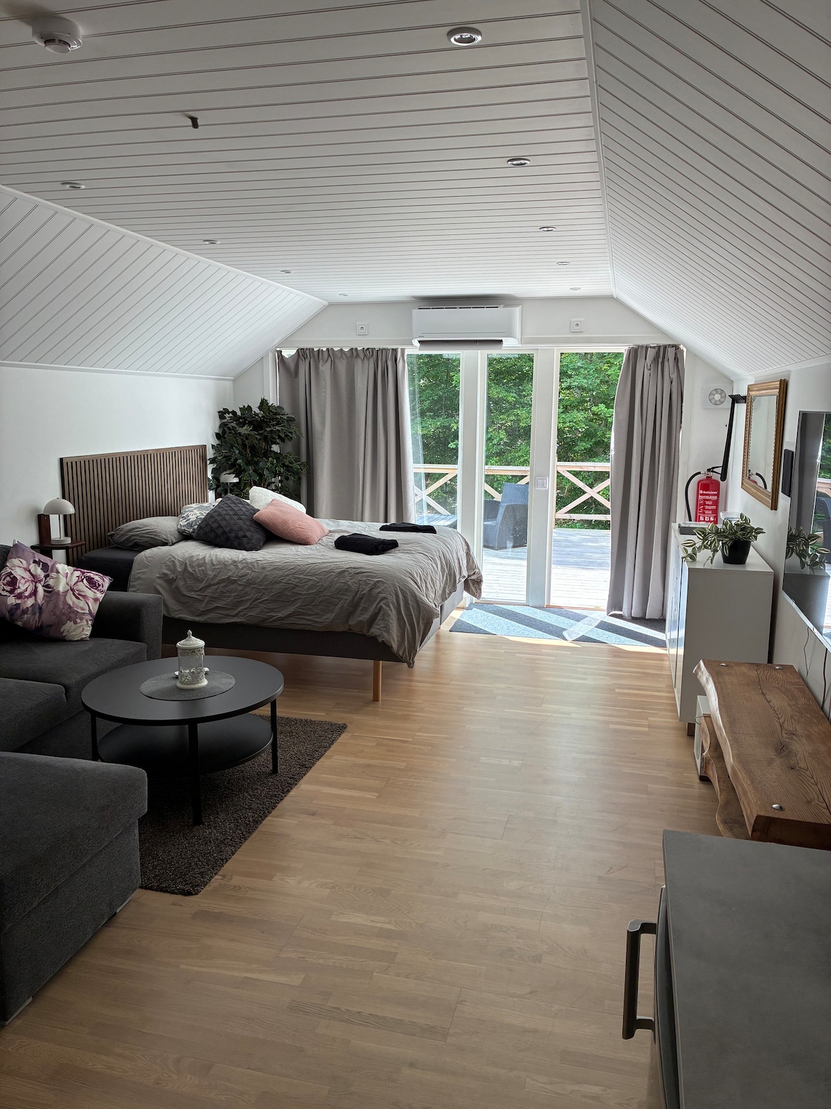 Sjöstugan - our pearl right by the lake! Private house with sleeping loft, kitchen, beautiful large room with fireplace and view of the lake. Wood-fired sauna with a dip in the lake right next door. Hot tub on the jetty - always warm. Swimming dock 5 meters outside the door. Access to a boat. If you want to buy a fishing license, contact the host. Wood for the fireplace and sauna is included. The yard is fenced all the way to the lake and our Beagle dog Vide is often loose outside. He's nice. Use of bed linens and towels, as well as cleaning, is included.