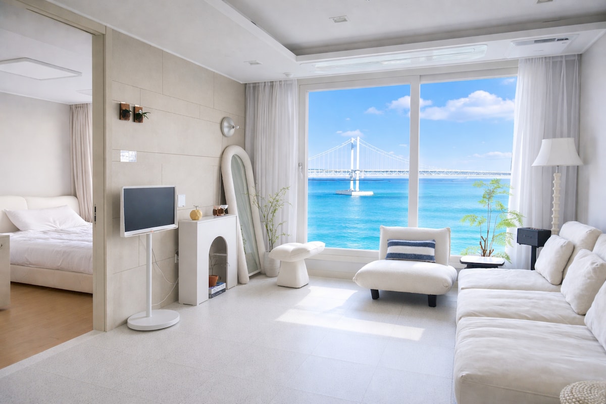 🏖 Gwangang MOODRIAN Full Ocean View that completes the premium lifestyle Gwangalli Moodrian, located on Gwangalli Beach in Busan, A dignified space suitable for all family, lovers, and friends, The dynamic panorama of Gwangan Bridge unfolding before your eyes This is a 𝗙𝘂𝗹𝗹 𝗢𝗰𝗲𝗮𝗻 𝗩𝗶𝗲𝘩 accommodation that can be viewed from the front of the bedroom and living room. 🏝 Ocean view · City view · Gwangan Bridge view on one screen Rare new apartment in Gwangalli & spacious layout with a two-room structure of 20 pyeong Home-like comfort completed with premium amenities and thoughtful care 🏡 Adding luxury amenities to a modern and stable interior, We offer the best comfort from short stays to long stays. The host's careful management always keeps the place clean and tidy. Comfort is like a hotel, Closer to your heart 😊 Small moments in Mudrian I hope it will be a pretty memory 💛