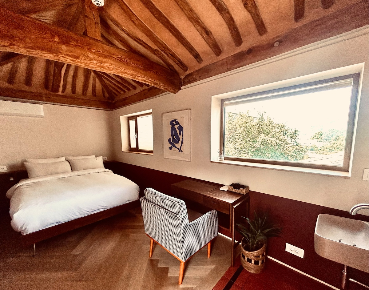 Gotaek (๊ณ ํ) means an old hanok, typically over 100 years old, The Classic-Goteak Seochon chosen by world-renowned artist Nicolas Party for a 6-week, and Filming locationn for famous Korean movie [Architecture 101]. A private luxury Hanok hotel with an outdoor jacuzzi, exclusively for one group, in the heart of Seoul. A stunning architectural gem preserving the charm of traditional Hanok while blending modern sophistication. Its rare loft-style design features state-of-the-art amenities
