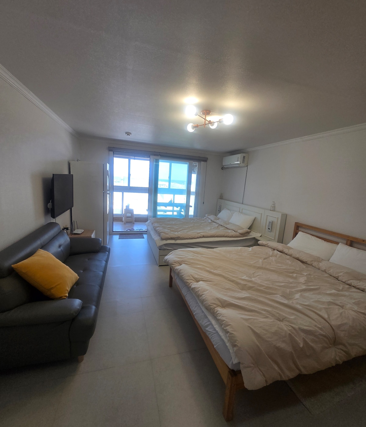 Hello ^^ This is Trustay, a local resident who manages the accommodation. When you enter the entrance, the beautiful sea will welcome you through the living room window. Please spend a relaxing morning with a 12pm check-out. Room type-1.5 room (bedroom + living room, kitchen + toilet) You can enjoy the best ocean view from the 10th floor of the high-rise ocean view. You can enjoy OTT videos such as Netflix and YouTube on the living room TV. Fill the space to your liking with a Bluetooth speaker It is a 5-minute taxi ride from KTX Mukho Station/Donghae Station and the intercity bus terminal. There is Hansum Beach and a beach promenade within a 3-minute walk from the property. Within a 5-minute walk, you can easily access the city center, including gourmet restaurants, E-Mart 24 convenience store, E-Mart, grocery store, Daiso, and Lotte Cinema. Amenities in the building, such as a rooftop observatory, fitness center, coin laundry, and other exercise facilities, are available. (some paid) - Other - 1. We will send you a message (front door digital door lock password, room number and instructions) on the day of check-in. 2. Accommodation address: 136-4 Hansum-ro, Donghae-si, Gangwon-do
