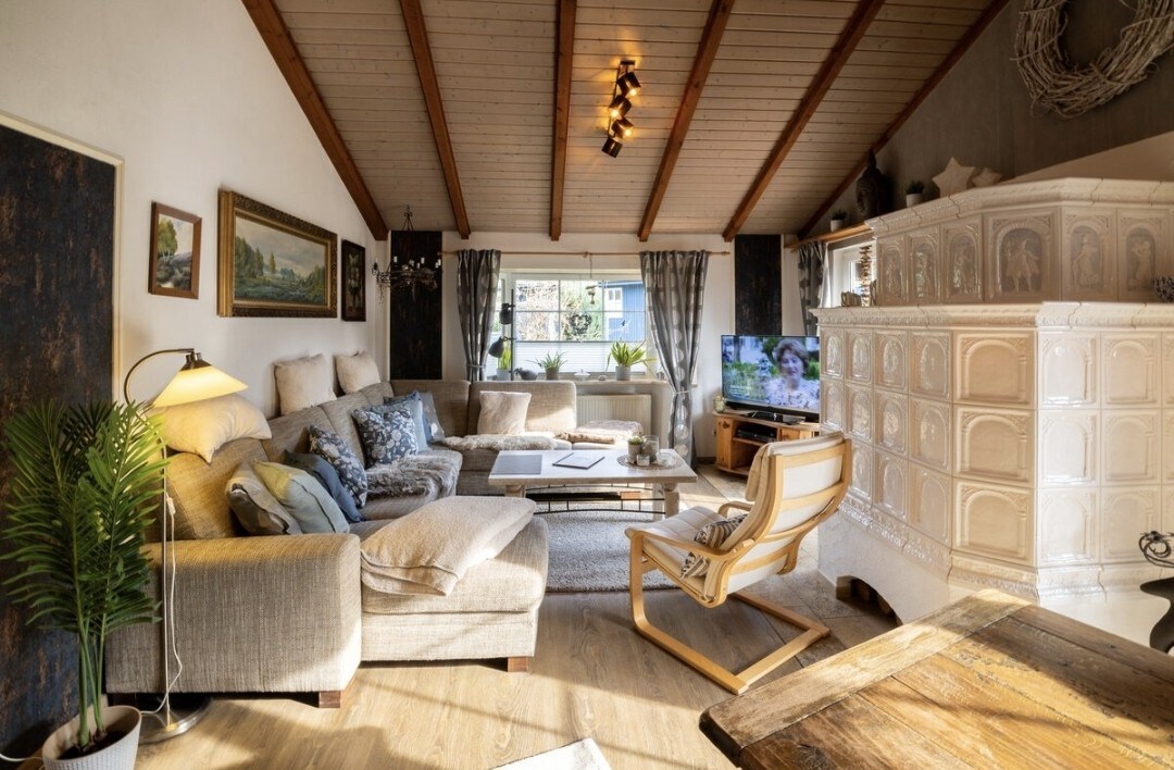 We offer you our spacious and stylishly furnished apartment in the attic for 6 people. It is a beautiful, newly renovated apartment with a large open kitchen, with a cooking island and adjoining dining area. Here in our house there are two more apartments. We live here across generations with grandparents, our two small children and our Bernese dog Bo. The apartment is located on our farm, rurally located on the L316
