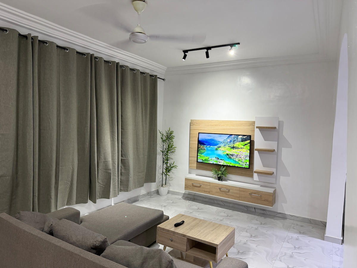 Welcome to your home away from home! This spacious and comfortable one-bedroom flat is perfect for both short and long stays in Accra. Located in the vibrant city center of Haatso, you'll enjoy easy access to supermarkets, restaurants, and local attractions, all within a few minutes' walk. Key Features: Super King-Size Bed Air Conditioning & Ceiling Fan Spacious Bathroom Fast Wi-Fi Private Balcony Smart TV Free Parking Work Space