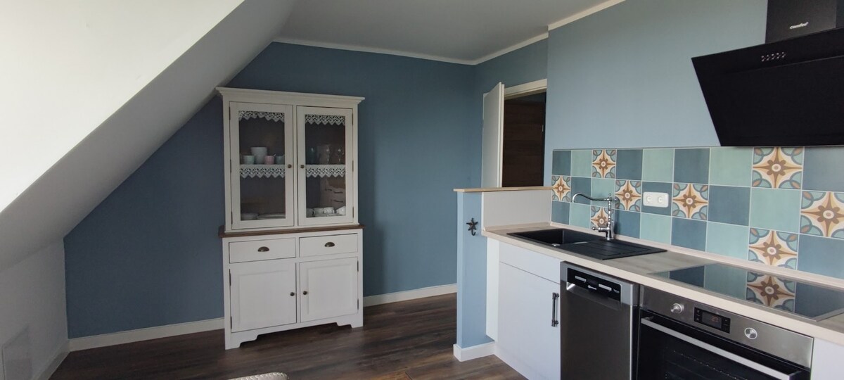 This apartment on the second floor of a detached house consists of a bedroom for three people, a kitchen with new built-in kitchen, a cozy living room and bathroom with shower, toilet and sink. From the living room, a balcony can be reached. In the garden, a terrace with barbecue facilities is available separately for guests. Within walking distance are shops, small shops, restaurants, doctors, pharmacy and a bicycle rental in the village of Hage.