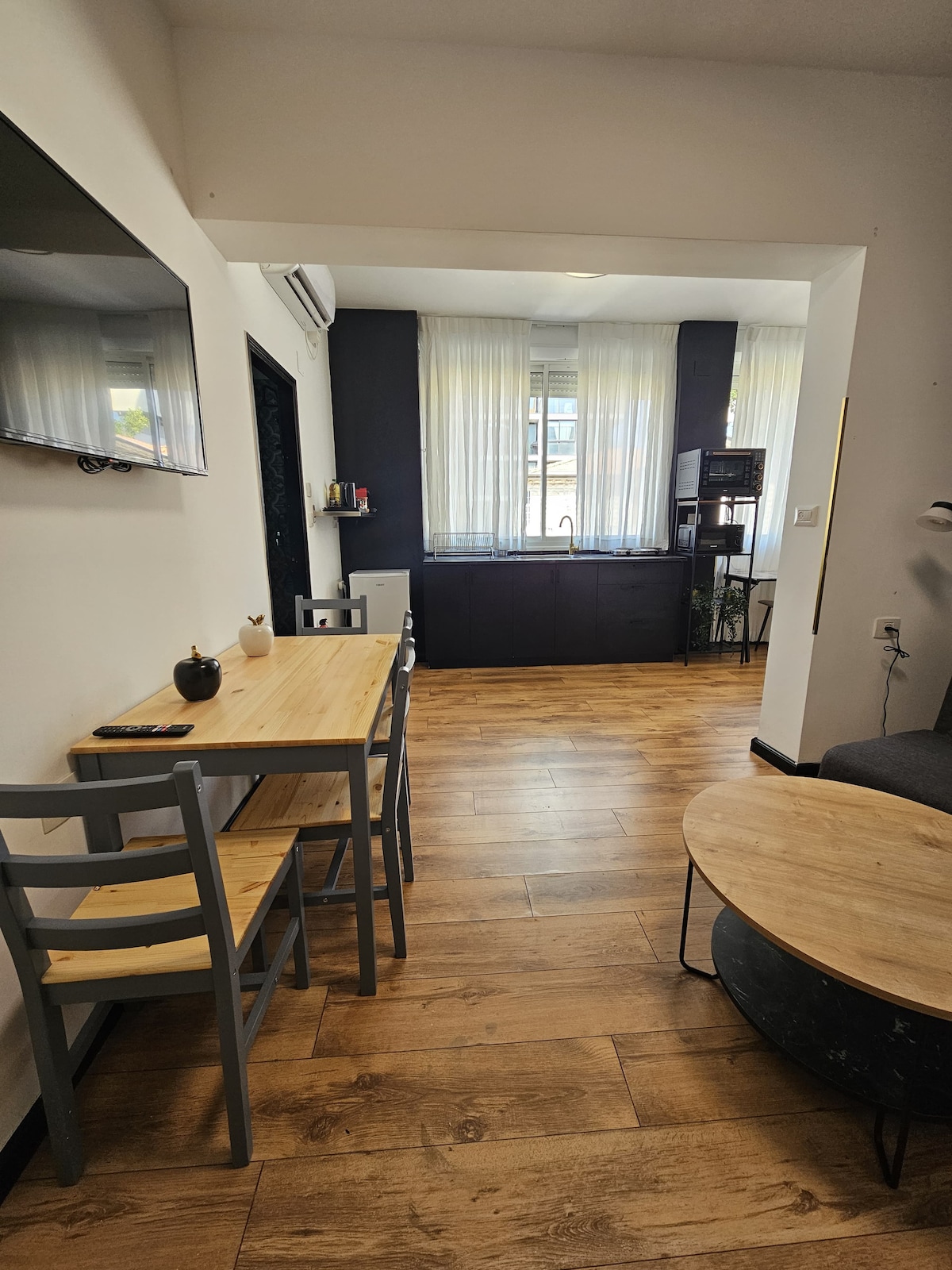 Небольшие апартаменты со своим отдельным входом и всеми удобствами находятся в 5 минутах неспешной хотьбы от пляжа. Рядом жд станция, с которой можно добраться до аэропорта Тель-Авива и в любую точку Израиля. В районе апартаментов располагаются магазины, кафе, оборудованная набережная продолжительность 10 км. Вся инфраструктура для комфортного отдыха. Comfortable apartments with their own entrance and all amenities are located 5 minutes walk from the beach.Near the train station,shops,cafes.