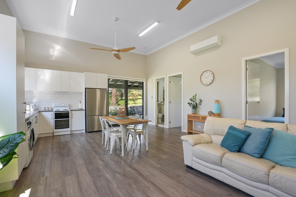 Great for families or romantic getaways Secluded & private gorgeous country views Dog & horse friendly (extra charges for horses) Dogs allowed inside Internal area is a spacious 60sqm Secure yard 1500 sqm (1.2m heavy netting fence) Luxury Sheridan bed linen & towels European pillow top comfy beds Smart TV with Netflix and Stan High Speed Unlimited Internet Washing machine Spacious under cover carport Alfresco deck 12sqm Firepit - Firewood Inc BBQ 4 horse paddocks Full size Dressage arena