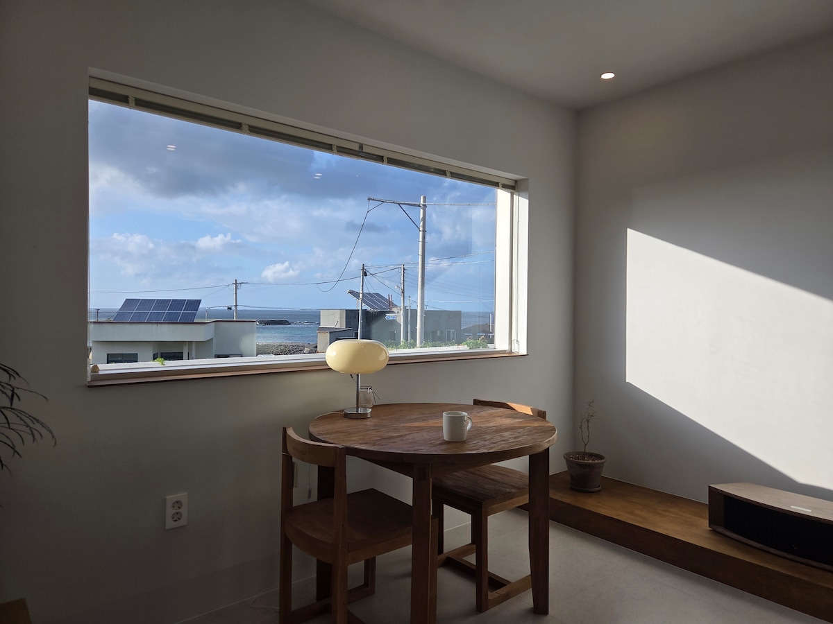 복잡한 마음을 덜어내러 오세요. 복잡한 생각이 들지 않게 비워두었습니다. 꽉 찬 여행도, 텅 빈 여행에도 잠깐의 비우는 시간은 필요하죠. 쉬는 동안 마음을 비워낼 수 있는 편한 공간을 함덕에 마련했습니다. 대부분을 덜어내고 제주의 풍경만 남겼습니다. 서쪽과 남쪽에 큰 창 네개에 너른 귤밭을 담았습니다. 주방에서 요리를 하다가도, 책을 읽다가도, 커피를 마시다가도 시시각각 조용히 변하는 귤밭을 바라볼 수 있습니다. 비워낸 마음에 맛있는 요리를 채울 수 있도록 주방은 넉넉한 크기로 마련했습니다. 슬그머니 들리는 귤밭의 밤소리 외, 소음이 들리지 않는 방. 푹신한 침구가 준비되어 있습니다 타올은 넉넉하게. 따뜻함은 기본. 특별할 것은 없지만, 욕실에서 꼭 필요한 것만 챙겼습니다. 차량 5분거리에 함덕해수욕장 ,마트,편의점이 있어 언제든 조용할 수 있고, 맘만 먹으면 원하는 것을 구할 수 있는 위치입니다.