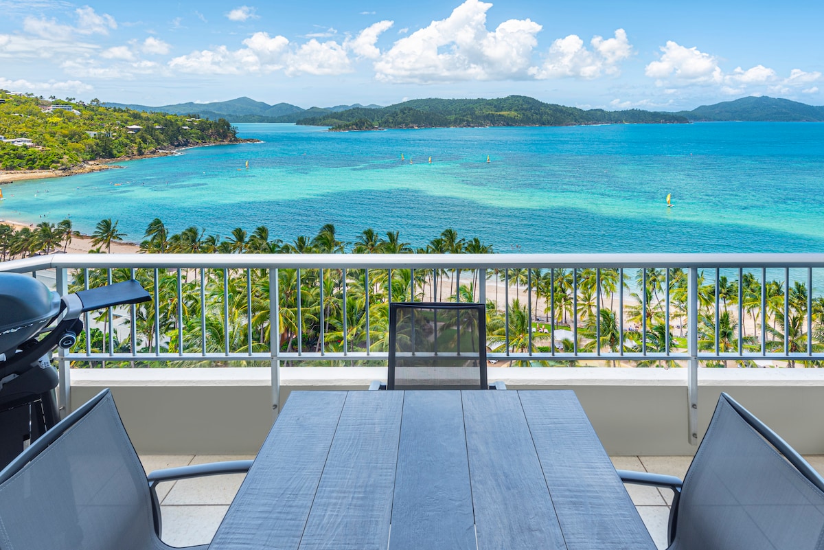 Take a break & unwind at this peaceful island retreat. Fully renovated (August 2023) modern 1 bedroom fully self contained apartment perfect for couples with views of the Whitsunday Passage. Sunsets are spectacular! Bedroom - king size bed & 2 balconies. Brand new modern kitchen & laundry. Comfortable 3 seat electric recliner lounge with tv and netflix subscription makes evenings a time to relax and unwind. BBQ, dining & deck chairs on the balcony draw you out to a tropical paradise.