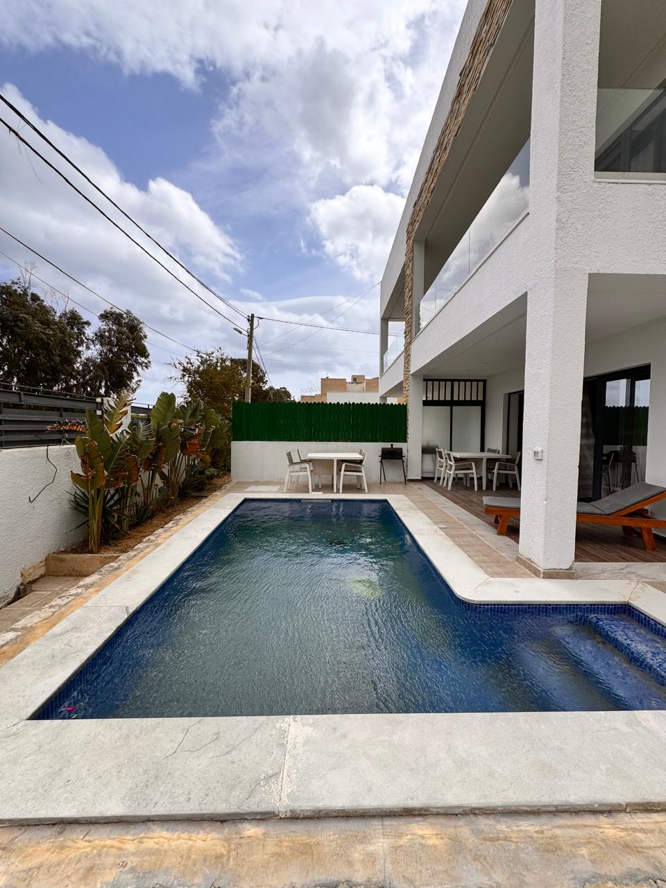 Enjoy a stunning beach-style pool with soft sand-like entry, jacuzzi, and waterfall just a few meters from Dar Allouche beach! This unique 3 floor villa features 5 bedrooms, 3 kitchens, and multiple sea view terraces. Each floor offers comfort and privacy, making it perfect for families or groups. Fully furnished and close to Kelibia, Hammem Ghzez, and Haouaria. It’s the ideal place to relax and enjoy your vacation.