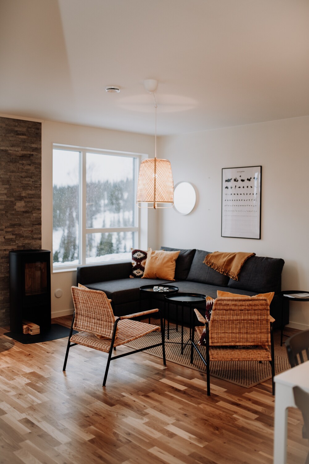 View, 90 m2, 3 bedrooms, sauna, fireplace, ski-in/out