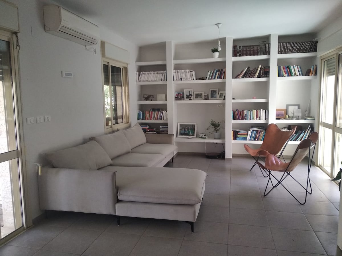 Our sweet apartment in Jerusalem is available for hosting. The apartment is immersed in greenery, like a kibbutz in a city and is located right next to the Emek HaMatzleba forest. The apartment is suitable for a family or families with young children, up to 8 people, and is located in a quiet neighborhood and within walking distance of the Israel Museum, the Valley of the Cross, Sacher Park, the Valley of the Armies, the Botanical Garden, and Gaza Street, where there are restaurants and cafes that are even open on Shabbat. There are 4 bedrooms, spacious living room and kitchen, a sweet balcony and a large garden with a trampoline, soccer goals, swing, pool, large dining table, Jacuzzi, space with a gas fire and more. It has everything, just come!