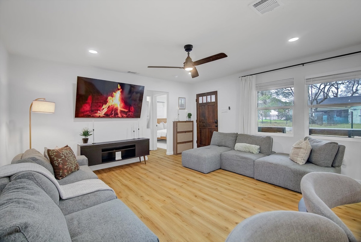 Welcome to The Lindale Cactus, a unique designer home centrally located near downtown Houston. This cozy home is thoughtfully designed to be the perfect getaway for couples, solo travelers, and small groups. Highlights about this home ⛳️ Hot tub, mini golf, games, grill 🚗 5 min from downtown 🌳 Located in the quiet historic Lindale Park neighborhood 🌐 High-speed internet 🎹 Piano with weighted keys 🎤 Record player with vintage records ✨ Mid-century designer touches throughout