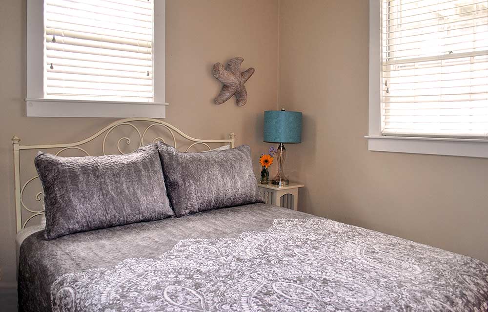 Room #2 is the largest room in the house, located front and center facing the beach. It has a Queen sized bed, as well as a full-sized futon. Views from this room and deck are absolutely breathtaking! If party of more than 4, please inquire about renting multiple rooms here.