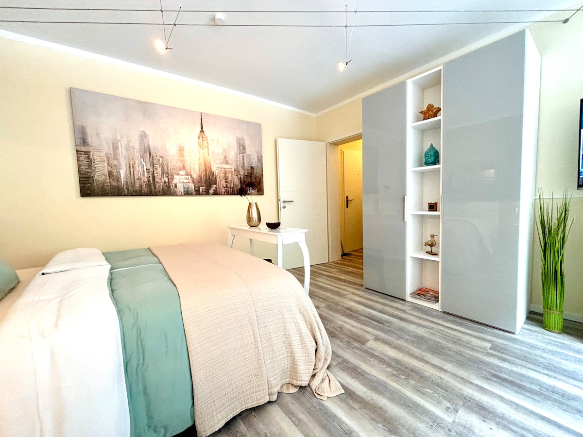 Our house is located in the center of town, numerous shopping facilities, banks, service providers and restaurants are also within walking distance from here in a few minutes away. The Würzbacher Weiher is about 800 m away, a bus stop and the train station are nearby. 70 m², large dining/living room with fully equipped fitted kitchen, spacious bathroom with floor-level shower/sink/toilet, bedroom with large double bed, Washing machine.