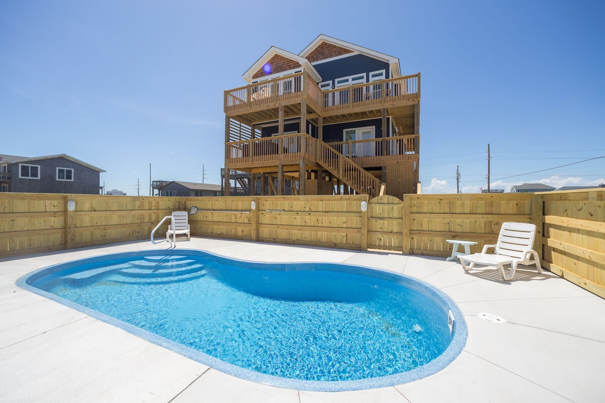 Relax at this magical and peaceful luxury oceanfront home. Brand New Heated pool with direct access to the beautiful beach along the acclaimed Cape Hatteras National Seashore, and minutes from all the shopping, dining and entertainment that the tri-villages has to offer, "Lost on Colony" offers the perfect location!! 4 bedroom, chefs kitchen, high end bedding and linens and newly updated furniture and beautifully decorated. You won’t want to leave! Pool Heat $75/day