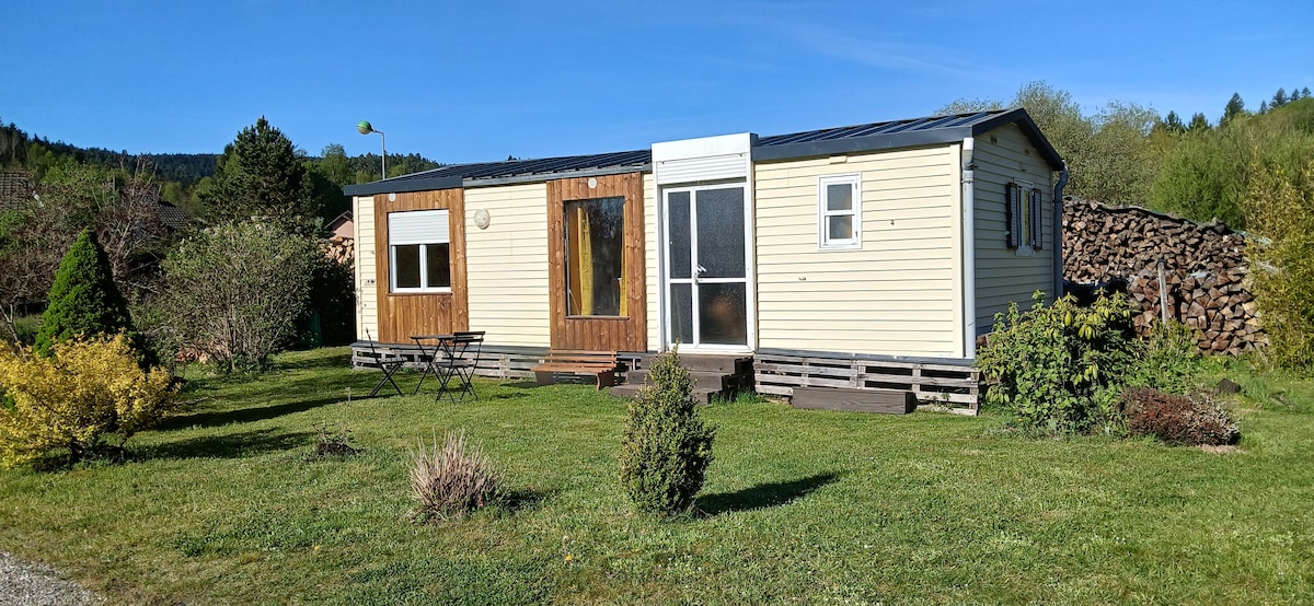 Just 20 minutes from Gérardmer, a comfortable and functional space: • A cozy mezzanine for restful nights • A small lounge area and a fully equipped kitchen • A bathroom with a modern dry toilet An exceptional setting: • Hiking trails less than 10 minutes away on foot • A peaceful and verdant environment Terrace with dining area and Nordic bath. Breakfast and Raclette are available for an additional fee (see photo). The price includes: cleaning, bed linen, towels, and bathrobes.