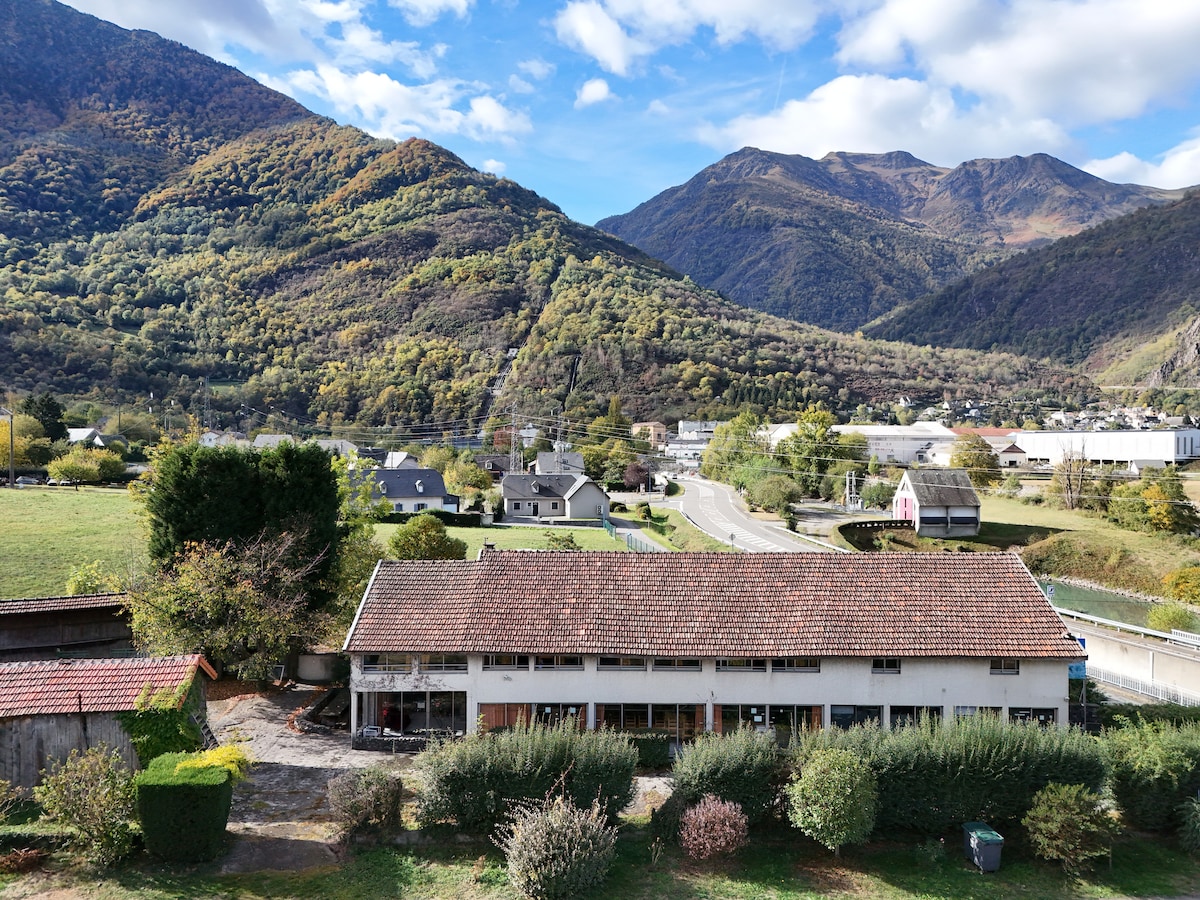 the Relais d 'Isaby was a sawmill that pulled the pure water from the Isaby stream that borders it, we renovated it into a group cottage, which can accommodate up to 50 people. 10 minutes from Argelès Gazost and 15 minutes from Lourdes, we are open all year round. We offer you a pleasant accommodation in the heart of the Hautes-Pyrénées. Our cottage includes apartments, a large room, a large exterior composed of greenery.