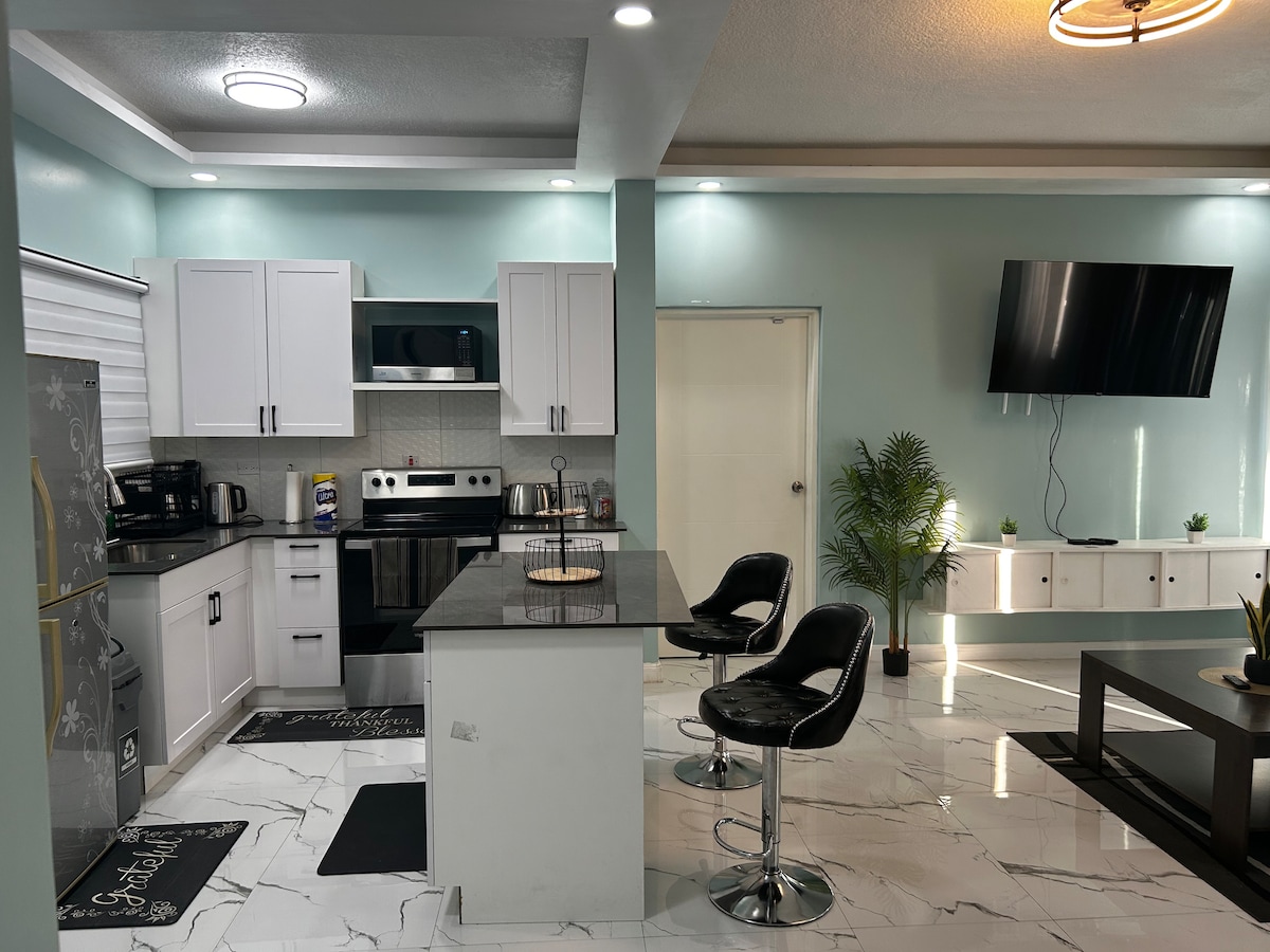 Escape to this stylish Caribbean retreat, perfect for up to 5 guests or a solo traveler. Enjoy high-speed Wi-Fi, air conditioning, an in-unit washer/dryer, a full kitchen, and all the comforts of an upscale home. Located in a secure neighborhood, you're just a 2-10 minute drive from top eateries, shopping, and attractions like the Bob Marley Museum. A car is recommended for easy city access. Free parking included—experience comfort, convenience, and Caribbean charm for an unforgettable stay!