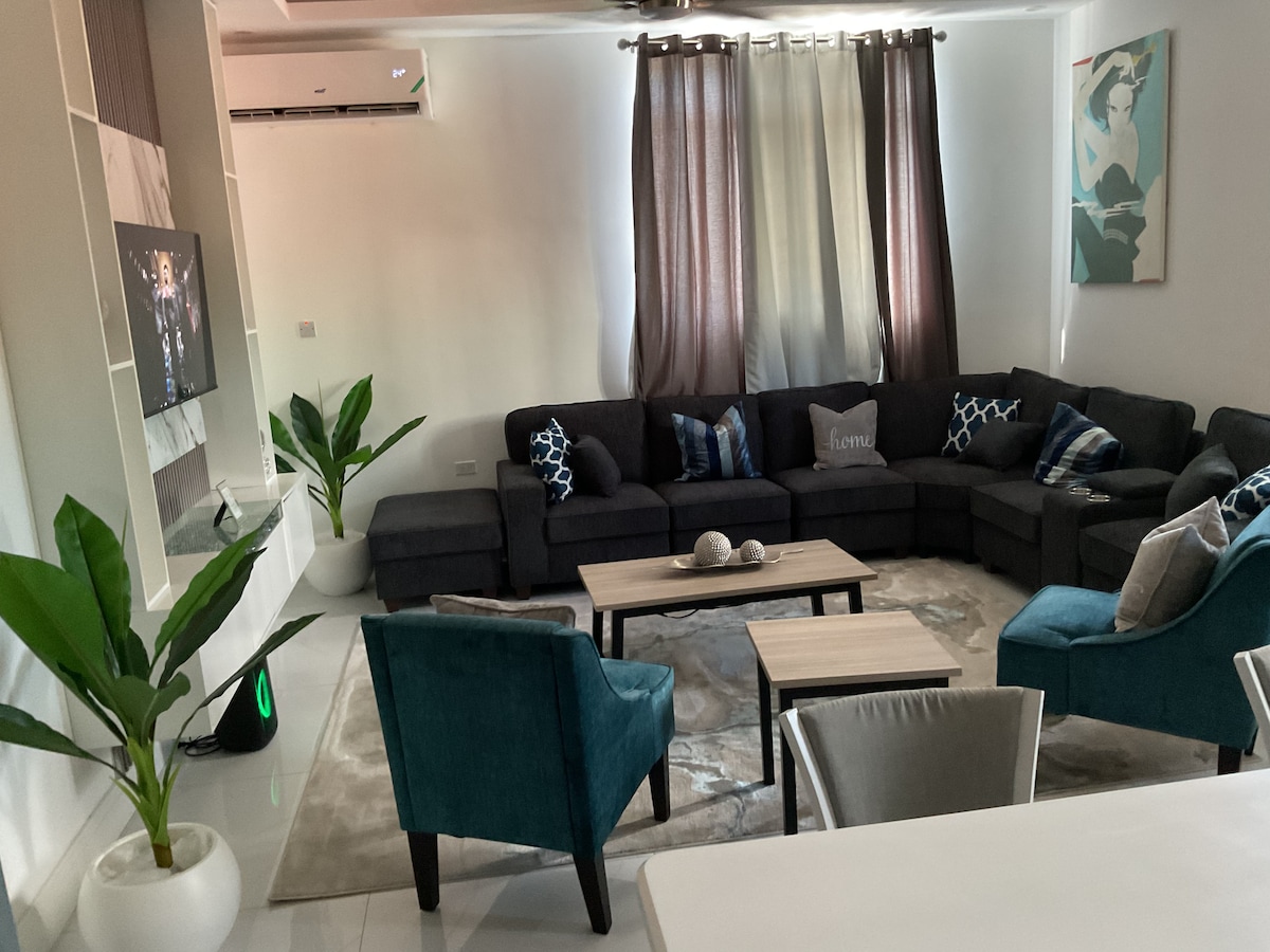 New 1 bedroom apartment with modern facilities in gated community 15 minutes from business district. There is free unlimited high speed wifi provided. Guests should know that enhanced cleaning protocol is in place since Covid-19. This location is perfect for either the business traveler who wants to work from home from or that couple wanting privacy but closeness to the action or the national returning home wanting a place to settle before making a permanent move.