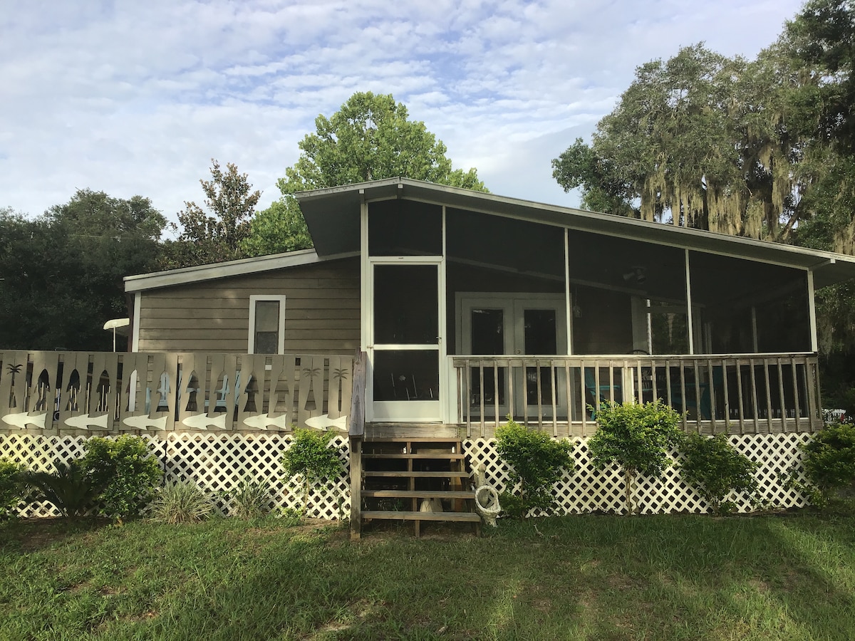 Unspoiled nature greets your every turn at this charming 650 SF lakefront retreat. A short distance from 10 of Florida's finest 1st magnitude springs, ranging from 30 - 90 minute drive, makes the location a perfect basecamp for adventure travel. Rest beneath the shade of Live oaks that pull the breeze ashore. Enjoy Sand hill cranes and hummingbirds from the cabana. Incredible sunsets from new dock. Paddle boat & paddle boards available for adventures. WiFi, Netflix, Laundry, HOT outdoor shower!
