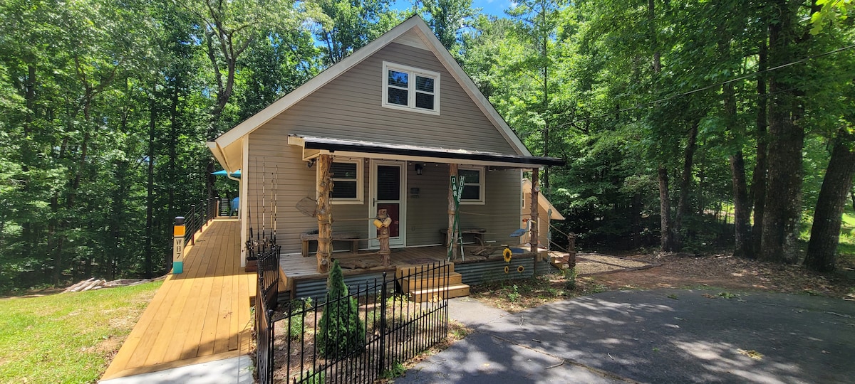 The Oar House is a unique, fun, and tranquil lake front cabin with room for the whole family. It is spacious enough to sleep 8 people, and cozy enough for 2. You will enjoy deer, turkey or maybe a fox meandering across the trail to the boat dock as you sit on the upper deck sipping your morning coffee. It is beautiful here on the lake. So come fishing, use our kayaks, or just sit on the dock and soak up the sun as you enjoy watching Henerietta, the local Blue Heron do her own fishing.