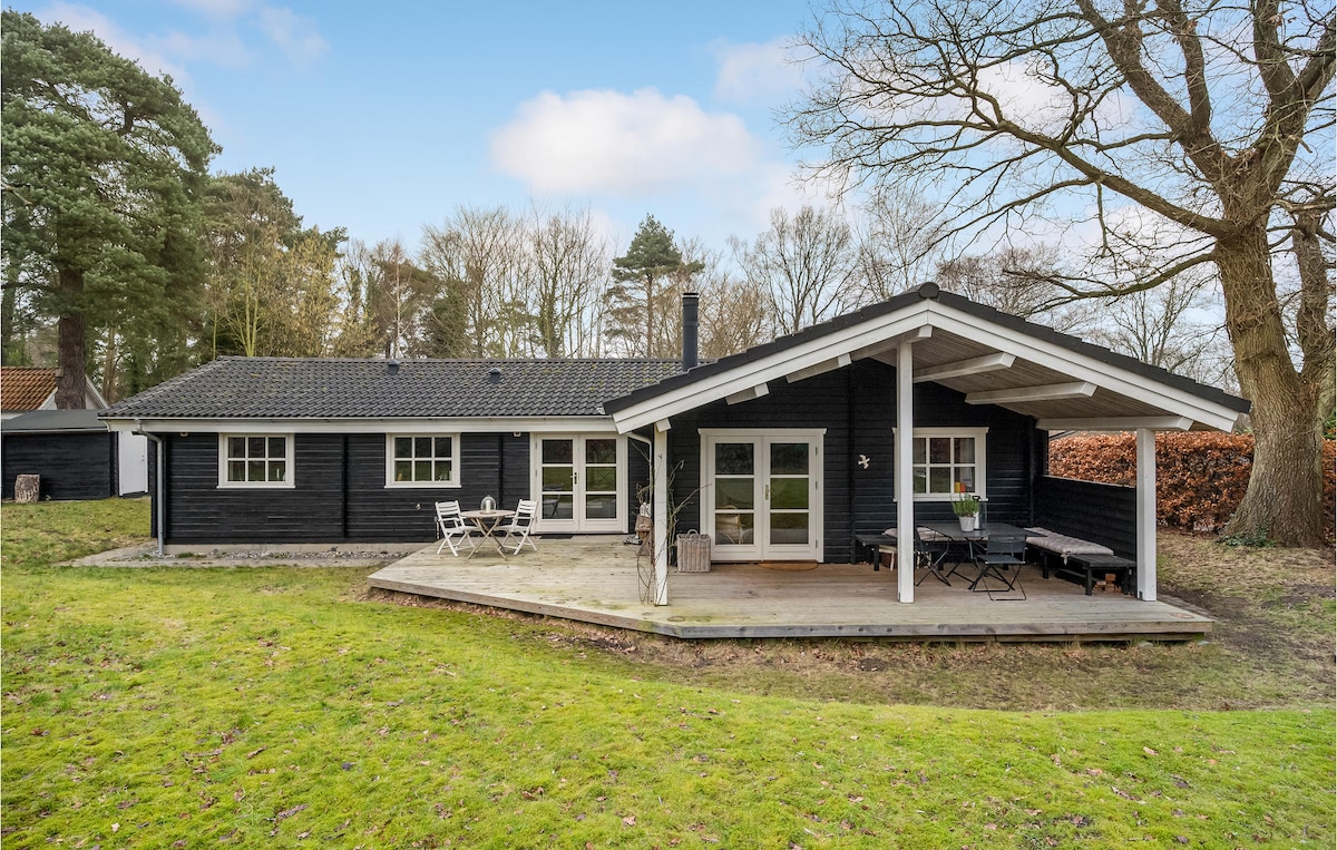 Hyggeligt sommerhus med 3 soveværelser, brusebadeværelse og køkken i åben forbindelse med opholdsstue med brændeovn. Der hører en stor sydvestvendt delvis overdækket terrasse, hvor udelivet kan nydes, også når det regner. Der er desuden en udendørs pejs, som kan tændes op når aftnerne bliver kølige. Den store have er indhegnet, og hunde er velkommen. Det tager ca. 10 minutter at gå ned til Dronningmølle Strandvej, hvor du både finder hyggelige spisesteder, butikker og selvfølgelig stranden.