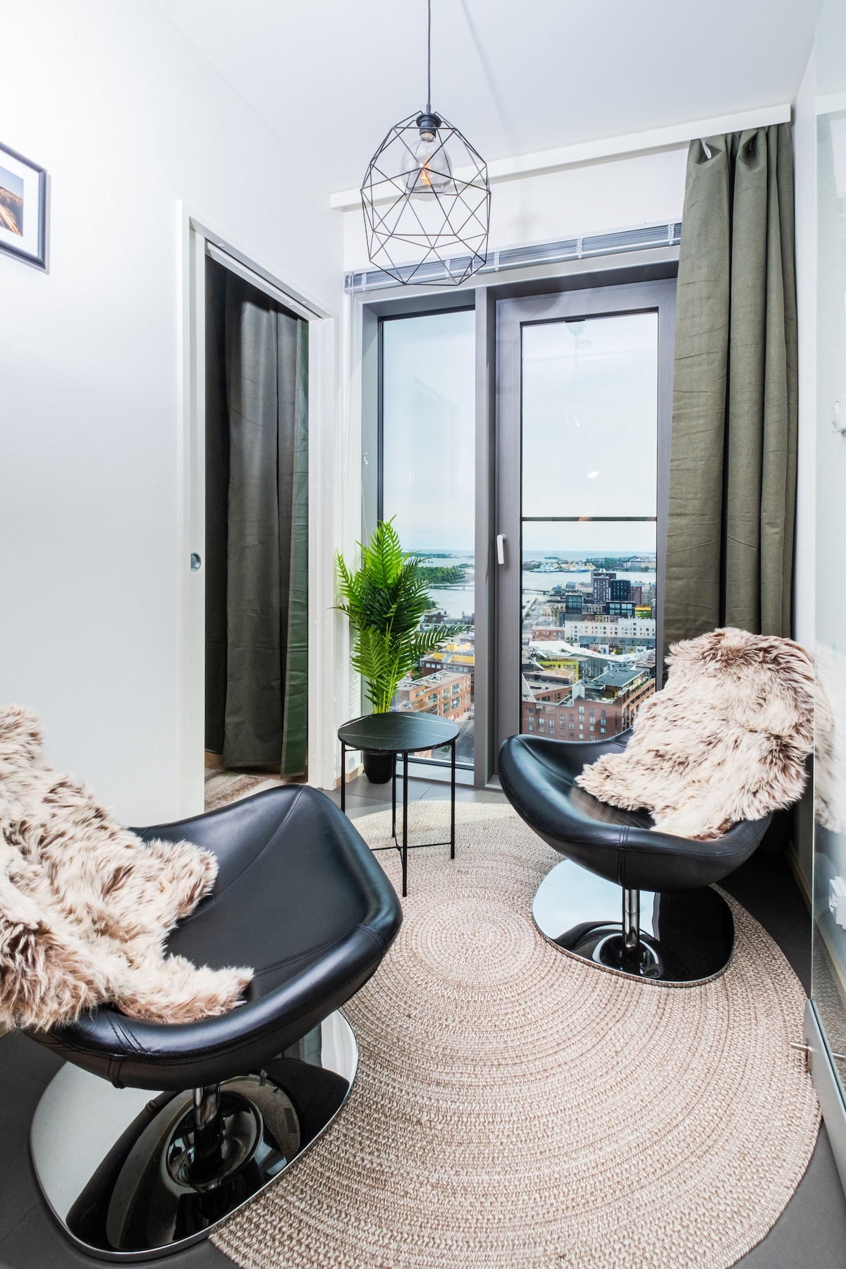 Window & balcony towards to south, magnificent sea & Helsinki center view Convenient for domestic & international traveller, 4th metro stop/6mins from central railway/metro station 65 inch QLED TV, PC+1000M WIFI, 34 inch gaming display+adapter The flat is from the tallest multi-functional building tower of Finland, on the top of Kalasatama metro station/Redi mall (direct elevator) with restaurants, brand shops & entertainment services, excellent for a holiday/business trip for up to 3 persons