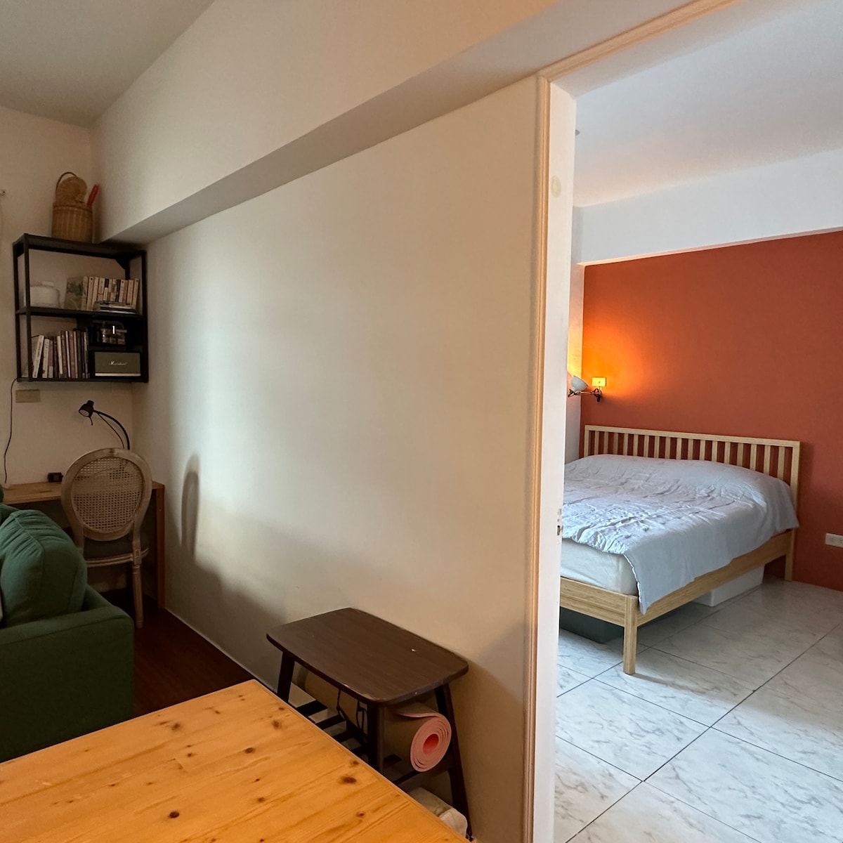 The smallest room in my house. 4.5 ping (15 sqm), homemade wooden bed, 105cm wide. No visitors are allowed in the room. Children under 12 are not allowed, and those over 12 are charged as adults. The third person's bay window sofa will be added to the bed (sofa length 180cm), the system automatically charges NT$400 per night. See the photo album for details. Toothbrush, toothpaste, soap, shower gel, towels, and filter kettle are provided. Combs, razors, plastic bottles of water are not provided. I hope you bring your own dental supplies. There is a 24-hour coin laundry right across the building. There is no parking lot attached, and there are white lines on both sides of the road on the first floor, making it easy to park. # How to check in: Please let us know in advance what time your plane arrives, or what time you expect to be here from other parts of Taiwan so we can accommodate your check-in.