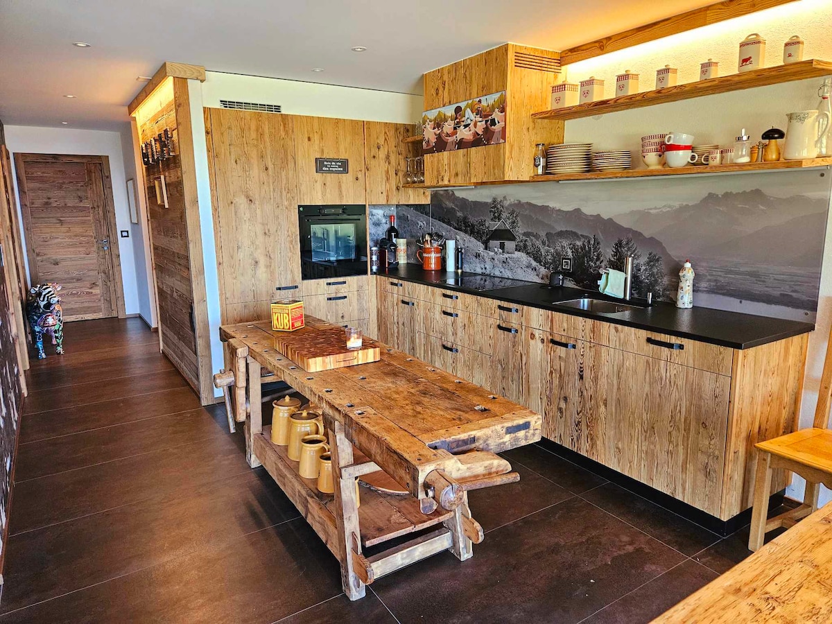 Relax with the whole family at this peaceful place to stay. The 2-bedroom chalet apartment offers incredible views of the Alps. It’s only a 10 minute drive away from the centre of Crans-Montana, which offers year round activities. Barzettes ski lift is a 8 min drive away. Multiple hikes start just a 5 min walk from the apartment. The apartment consists of 2 bedrooms, a living room with an open kitchen. It has all amenities for a relaxed weekend or a longer family vacation in winter or summer.