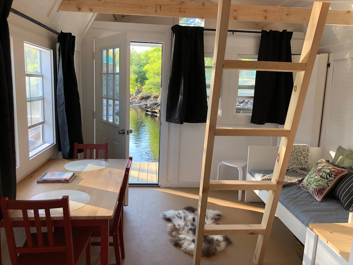 Waterfront Cottage: Huge deck, sun sets, Private Hot Tub: 6 Person tub for 2. Panoramic Water Views: Modern Cabin: privacy and a peaceful environment. Large Deck: outdoor living space both you can take in the sun or retreat into the share. Nature Retreat with wildlife Romantic Escape: for couples, Heated floors, Shower tower, queen master, an extra guest could sleep on the couch. Super private chefs kitchen. Well equipped for all seasons.
