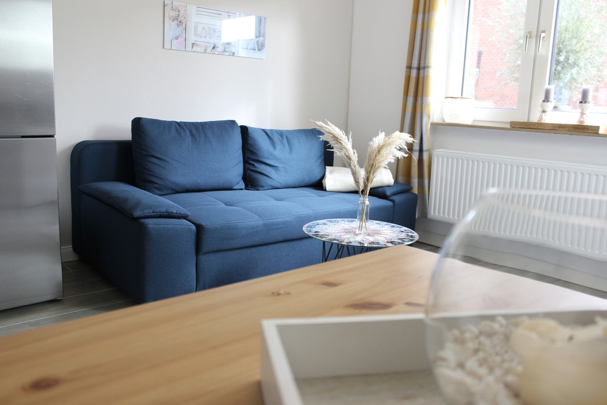 The city of Leer is also called the "Gateway to East Frisia" and has about 35,000 inhabitants. There are numerous leisure, recreational and adventure opportunities. There is a pedestrian zone, a harbor and a beautiful old town. It is only 50 meters to the East Frisian hiking trail. There are 2 bedrooms and a sofa bed. We shall supply a travel cot on request. Included in the price are bed linens, towels and cleaning supplies. Amenities: hair dryer, toaster, coffee maker, kettle, etc.