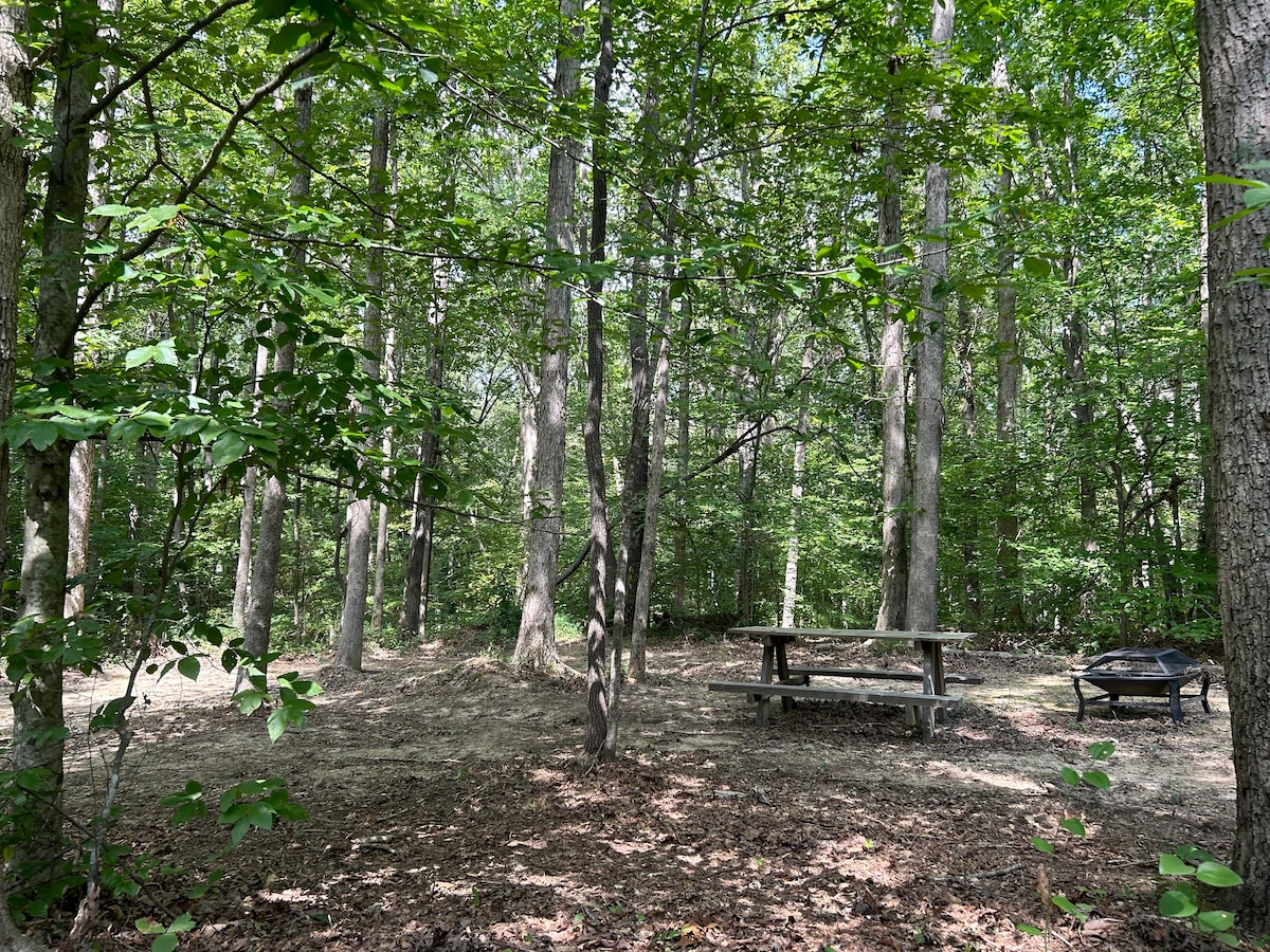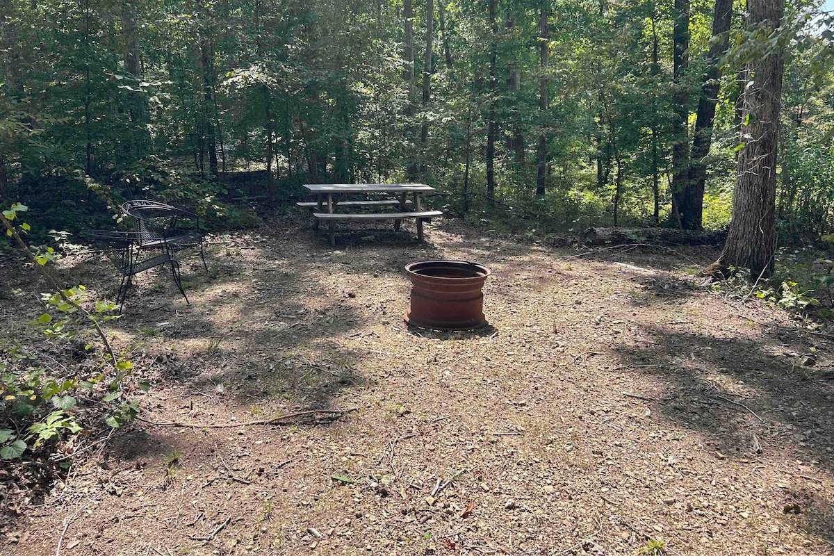 Discover this special campsite! It has a large fire pit, a picnic table, and two chairs. The campsite is secluded and there are no neighboring sites within sight. The sounds of nature are all around you here. Say goodbye to the noisy city life and get away in this wooded campsite to relax and unplug. If you do need to check in with friends or family, there is free wifi at the host's home parking lot. Water comes from the rock here, and the creek is usually crystal clear!