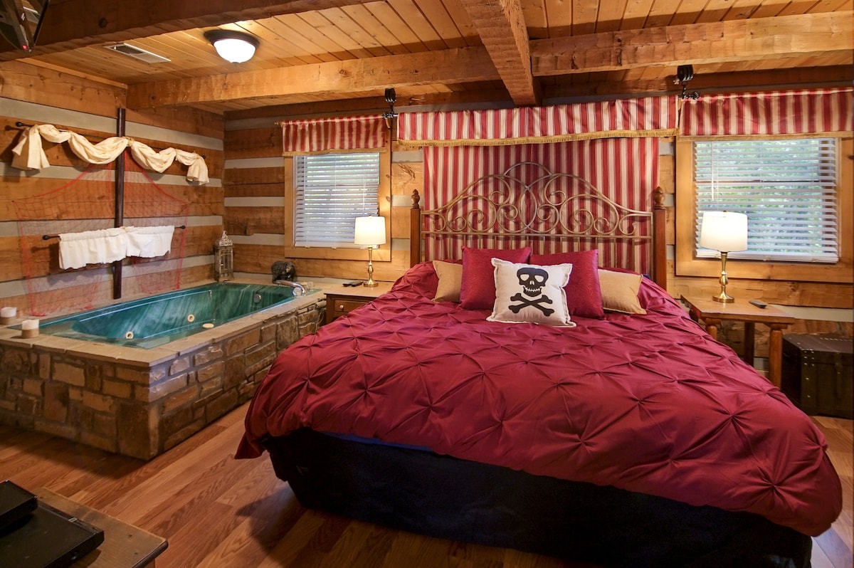 Yo Ho Ho! Welcome aboard Pirate Ridge. The ORIGINAL pirate-themed cabin in Pigeon Forge/Gatlinburg. Nestled in the mountains, the cozy cabin is close to downtown. Set sail on your Smoky Mountain adventure! ♥ Romantic King Bedroom ★ Hot Tub on Screened/Private Deck ★ Large Indoor Tub ★ Fast WiFi ★ Smart TV + Cable ♥ "Perfect place for romantic getaway" ★ Gas Fireplace ★ Secluded/Private ★ Good Times/Great Pics ♥ "Such an amazing host & experience!" Book now for an unforgettable trip, matey!