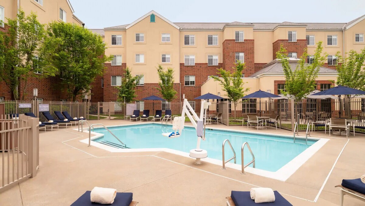 Stay in a peaceful suburban pocket just off Route 17, Residence Inn Saddle River. Each spacious suite feels like home with a full kitchen, living area, and cozy workspace — perfect for both short trips and extended stays. Enjoy free hot breakfast each morning, take a dip in the outdoor pool, or squeeze in a workout at the fitness center. With pet-friendly rooms, on-site parking, and quick access to shopping and dining, this stay blends comfort with convenience.